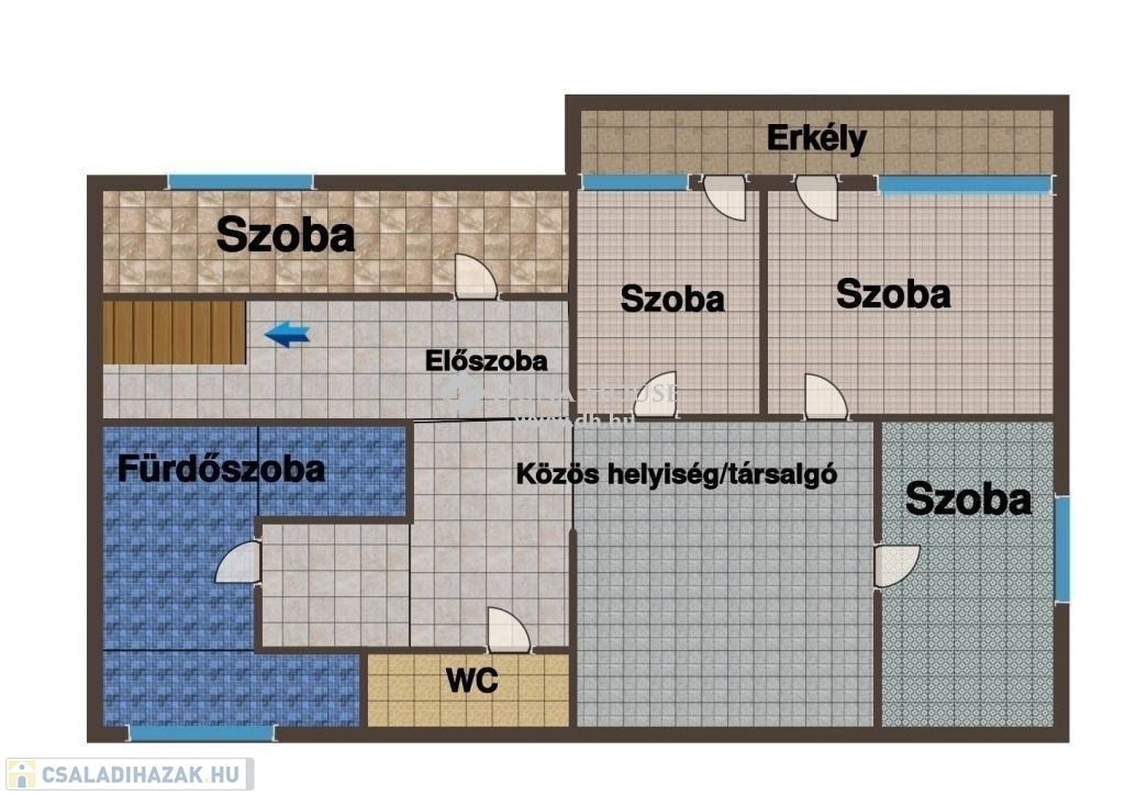 2 fürdőszoba (egy káddal, egy tusolóval) + külön mellékhelyiség