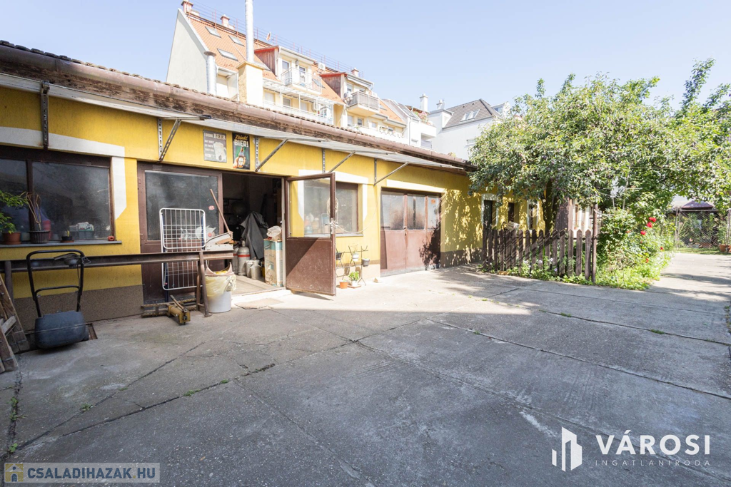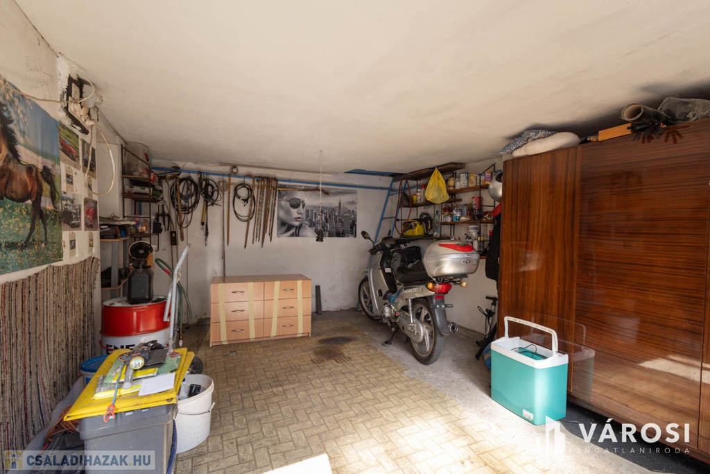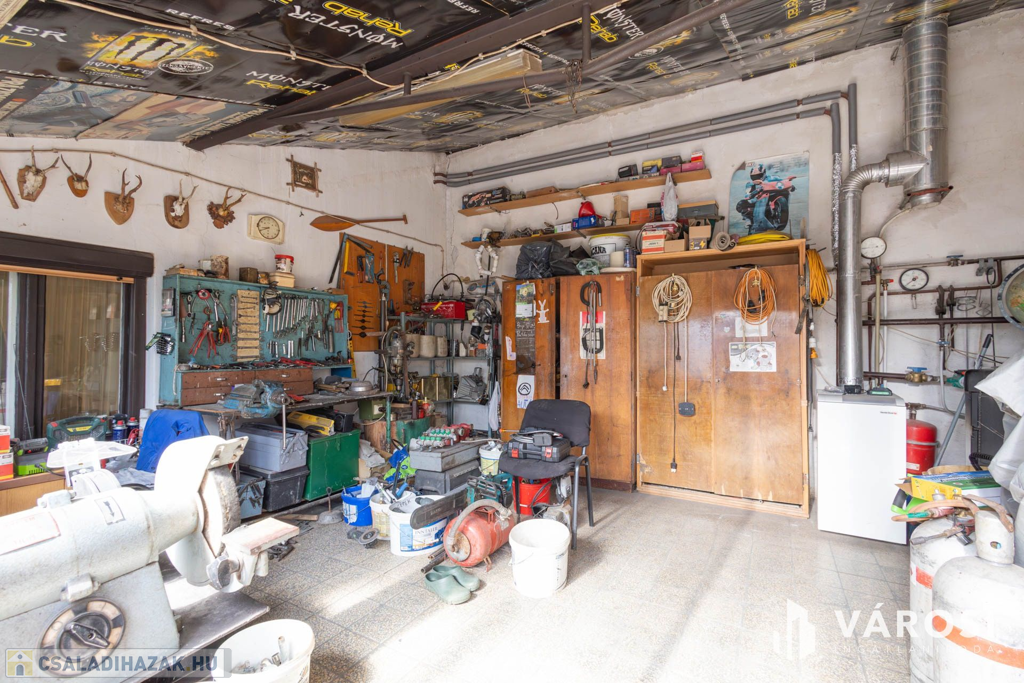 A három külön garázs jelenlegi mérete 57 m2, így akár autószerelőnek vagy bármilyen műhelynek alkalmas lehet.
