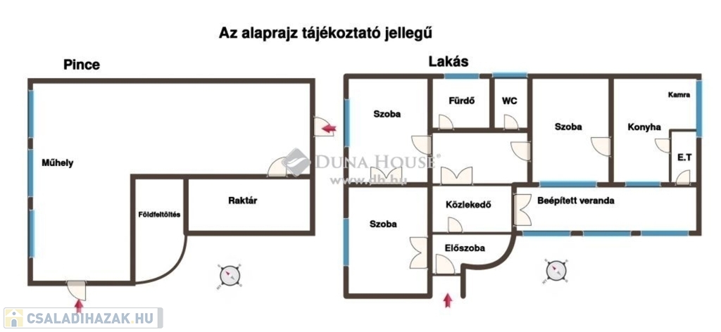 Az épületben, két szint található, a magasföldszint 163 nm, a pinceszint pedig 105 nm.
