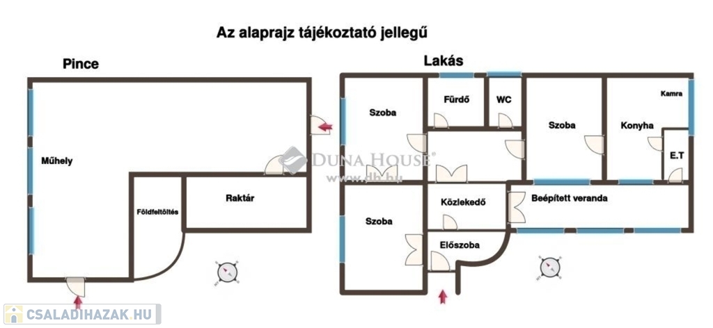 Két szint: 163 m²-es magasföldszint + 105 m²-es pince