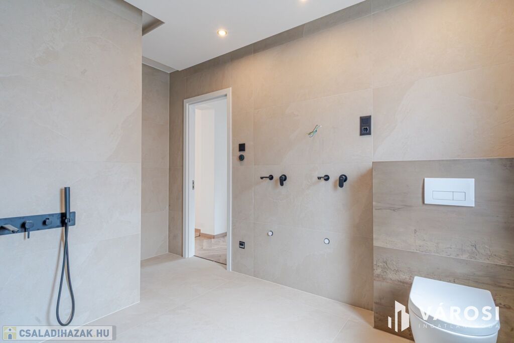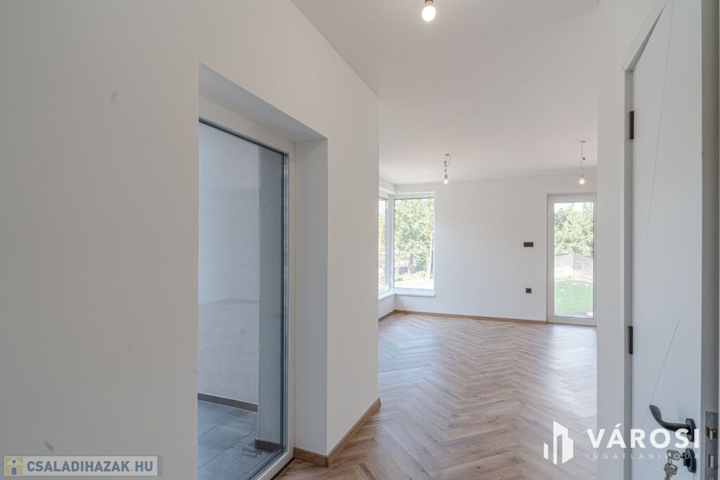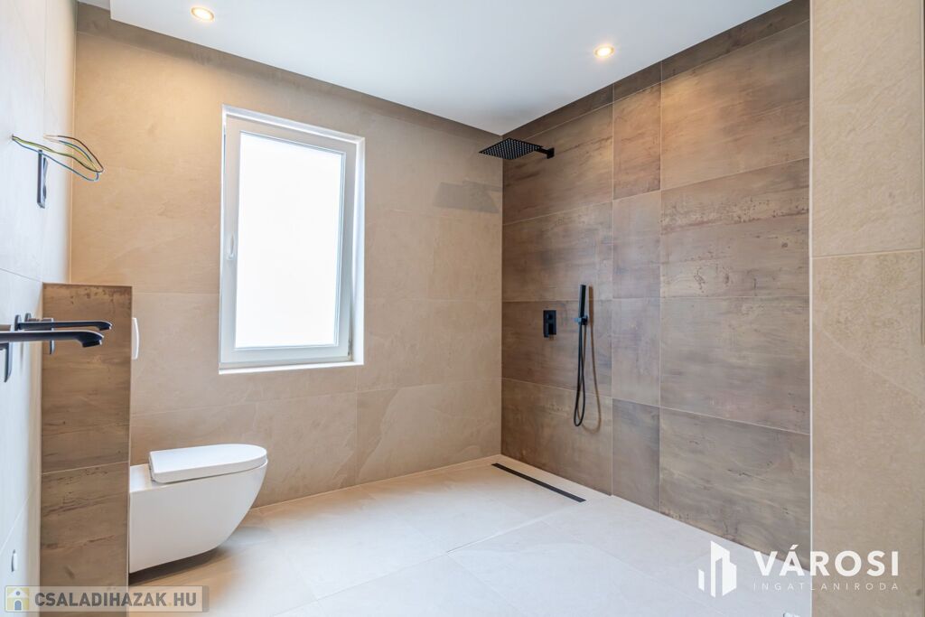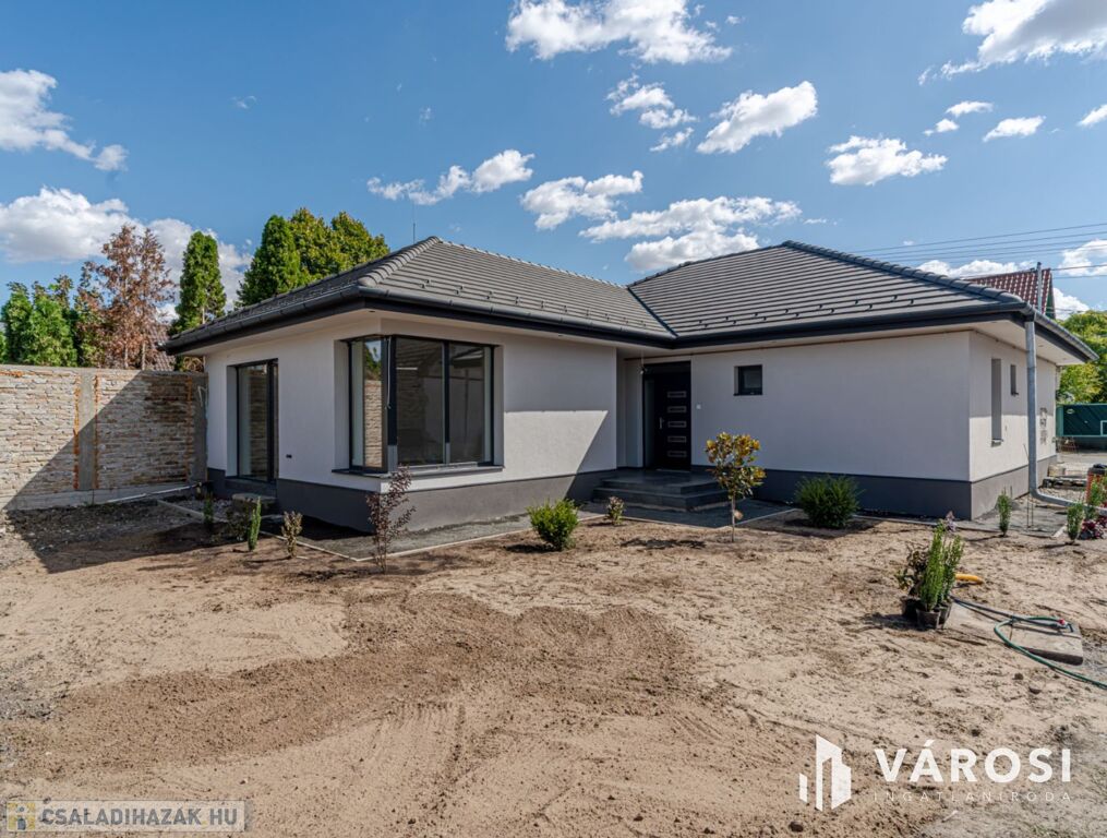 A ház kulcsrakész állapotú , csak az udvari térburkolatok és a kerítések kivitelezése, valamint a teljes fürdőszobai szaniterek elhelyezése van hátra.