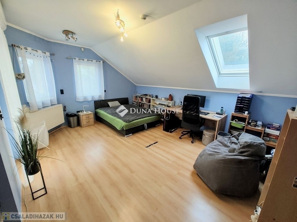 A felső szint a pihenés nyugodtabb világa. Három külön nyíló szoba, egy gardrób, valamint fürdőszoba és külön WC szolgálja a kényelmet és az átlátható használatot. Itt minden funkciónak megvan a maga helye, felesleges kompromisszumok nélkül.