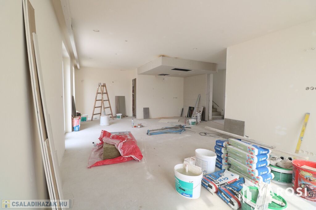 - Nappali, konyha,3.szoba, 1 fürdő, 2 WC, gardrób, háztartási helyiség, tároló,garázs,terasz.patio.