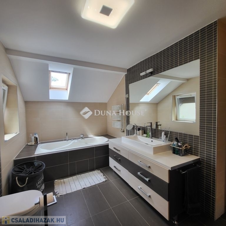 Emelet: tágas előtér, három hálószoba, fürdőszoba WC-vel, külön vendég-WC, 10 m²-es terasz.
