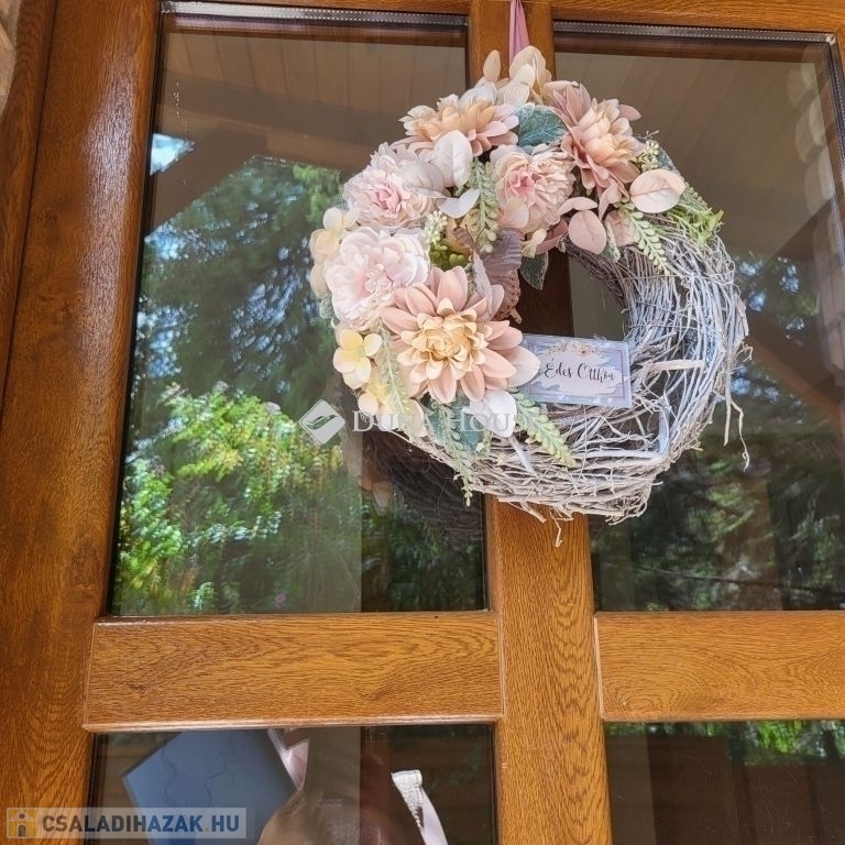 Földszint: nappali teraszkapcsolattal, dupla konyha étkezővel, spájz, szoba, fürdőszoba WC-vel, külön vendég-WC