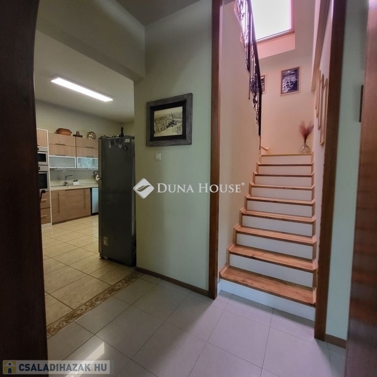 A földszinten nappali teraszkapcsolattal, dupla konyha étkezővel, spájz, egy hálószoba, fürdőszoba WC-vel és külön vendég-WC található. Az emeleten három hálószoba, fürdőszoba WC-vel, külön vendég-WC és 10 m²-es terasz biztosít kényelmet.