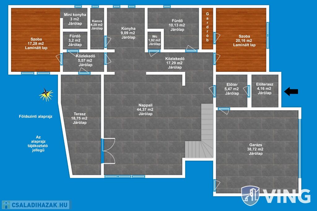 A ház 5 db hálószobával, 1 db " egy szemmel alig látható" 45 négyzetméteres nappalival, 2 db konyhával ,3 db fürdőszobával, 2 db külön Wc-vel,, és erkélyekkel, terasszal, valamint gardróbbal, és előtér közlekedőkkel, és háztartási helyiséggel (ezek mellett számtalan funkcióval) rendelkezik. A lakás központi része a nappali, ahonnan könnyedén kijutunk a hangulatos teraszon keresztül növények sokaságában pompázó kertbe. Az ingatlan elhelyezkedésre, minősége, kialakítása miatt rendkívül sokrétű a felhasználása - akár lakás, vagy befektetési célra -, amely maximálisan kiemeli ezt az ingatlant az átlagos házak sorából és egyedülálló választássá teszi azt.