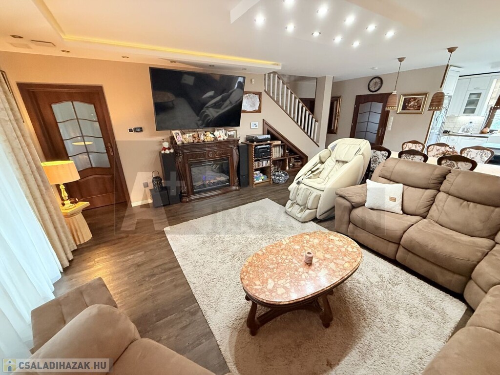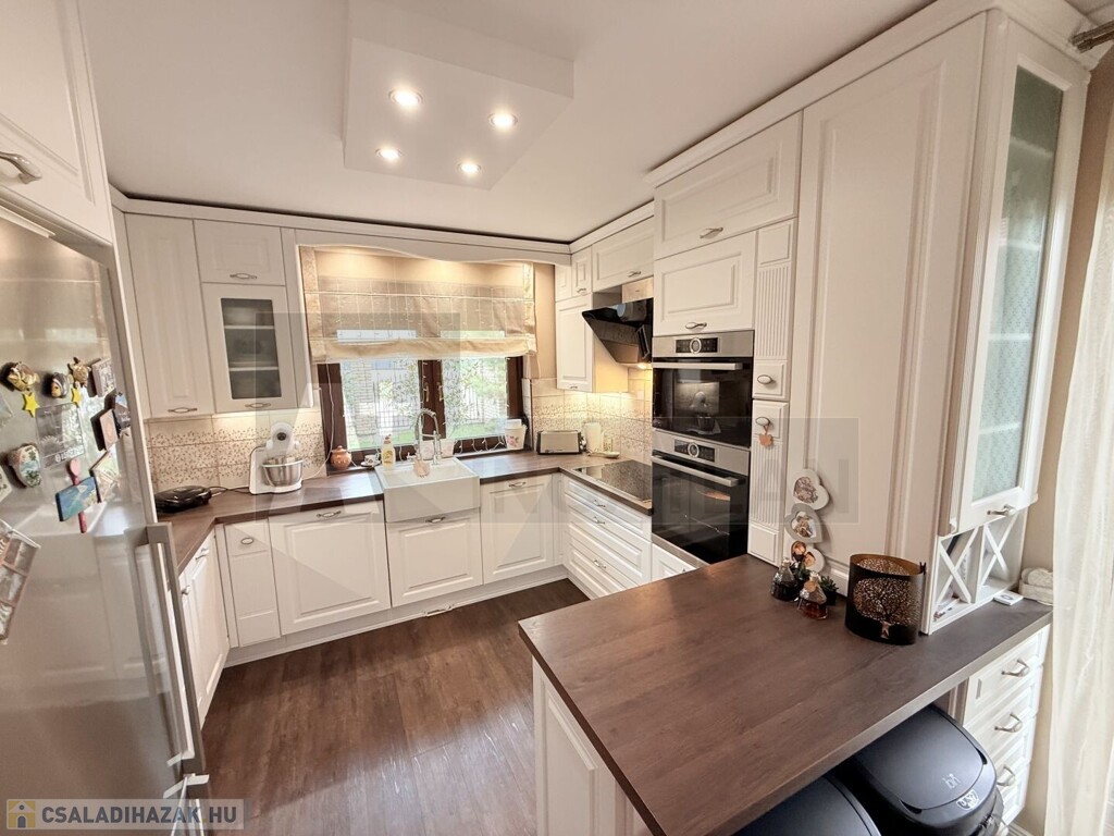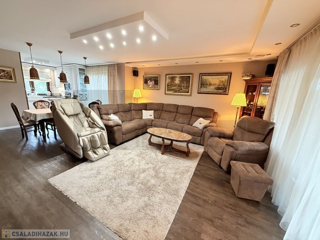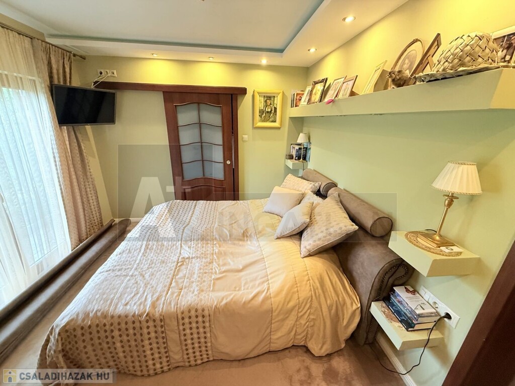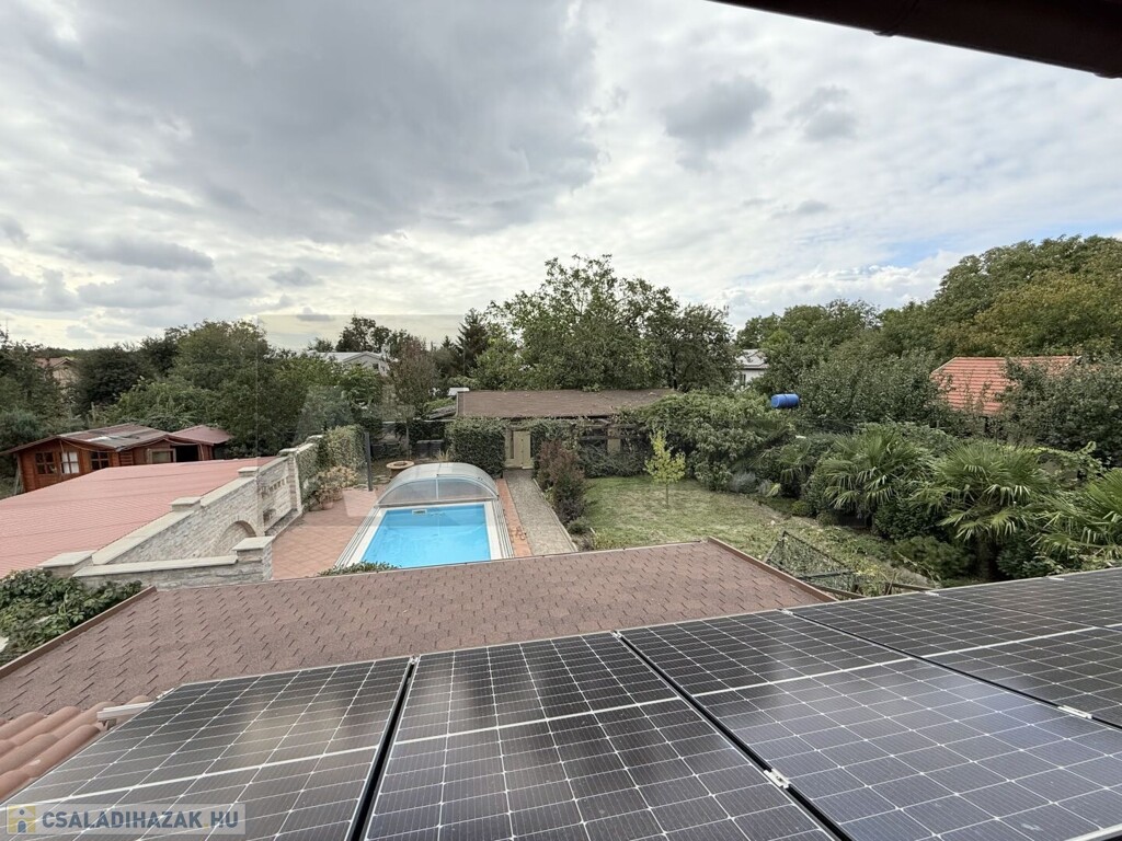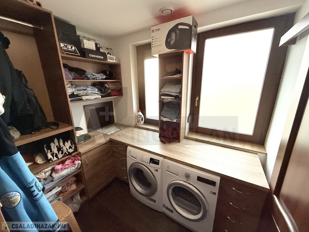 -napelem 11kw , hőszivattyú , padló fűtés , mennyezet hűtés , termosztát helyiségenként, központi szellőztető, központi porszívó , riasztó rendszer , 6 kamerás ,