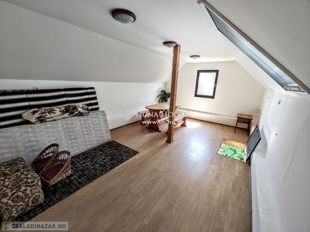 A tetőtérben egy tágas, 24 m²-es szoba került kialakításra, amely ideális közösségi térként vagy akár saját kis kuckónak is