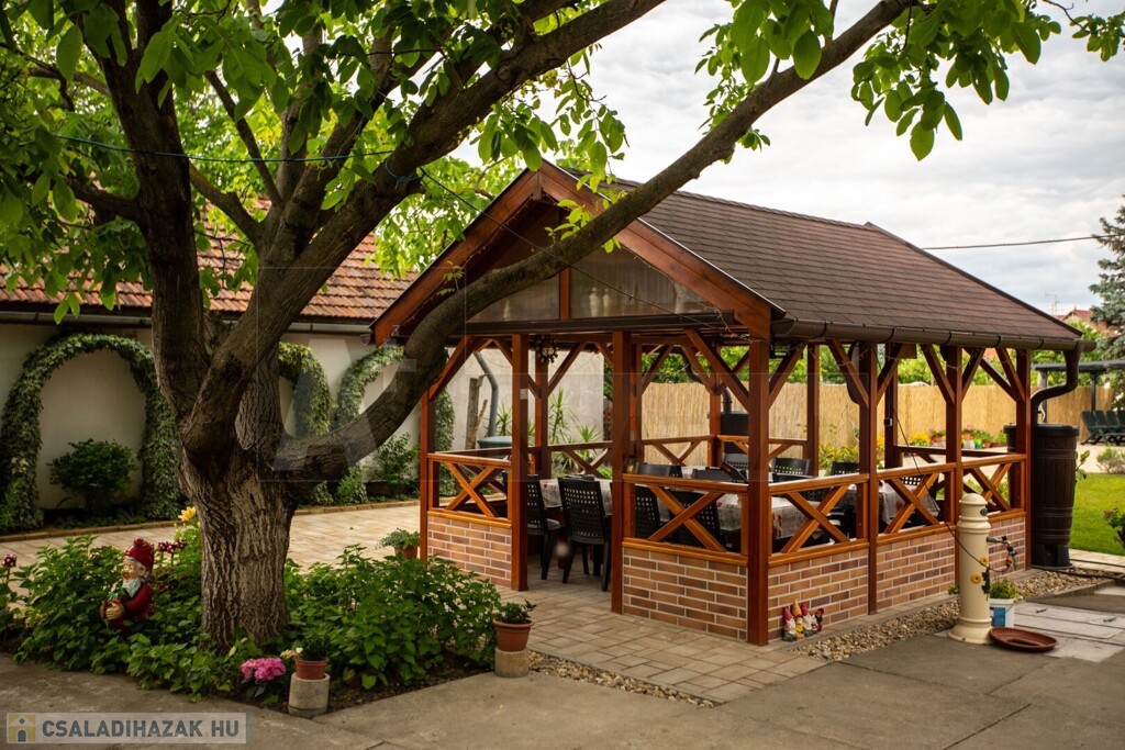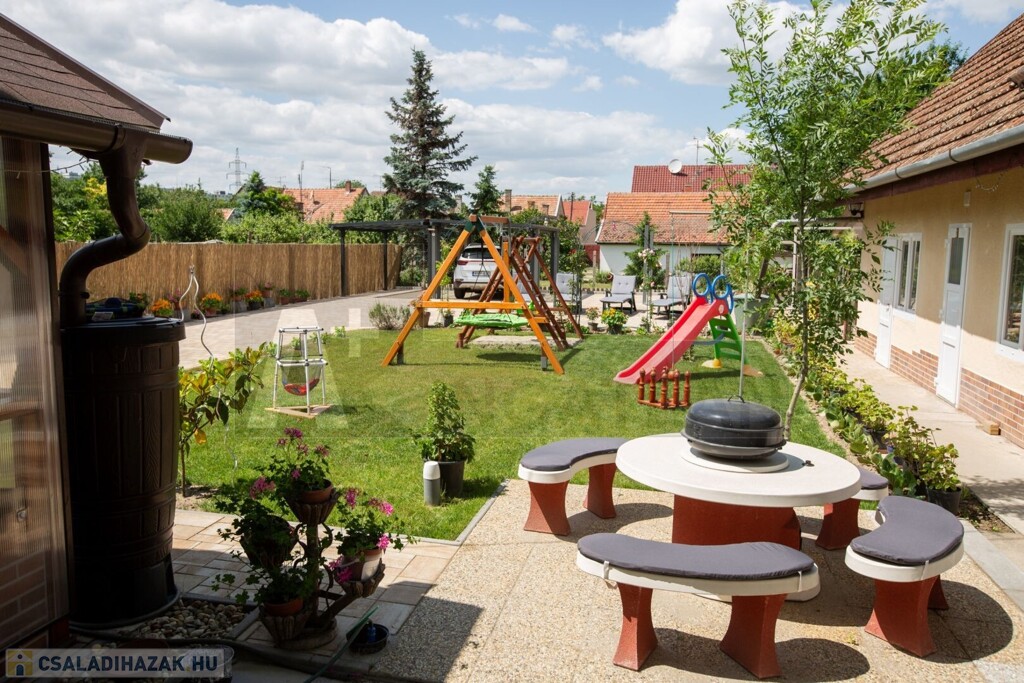 Az udvarban kapott helyet egy 16 m2-es kerti kiülő, mely egyszerűen téliesíthető és egy kerti sütögető-bográcsozó. Esővízgyűjtésre öt db beépített víztároló szolgál közel 1000 liter víz tárolásához.