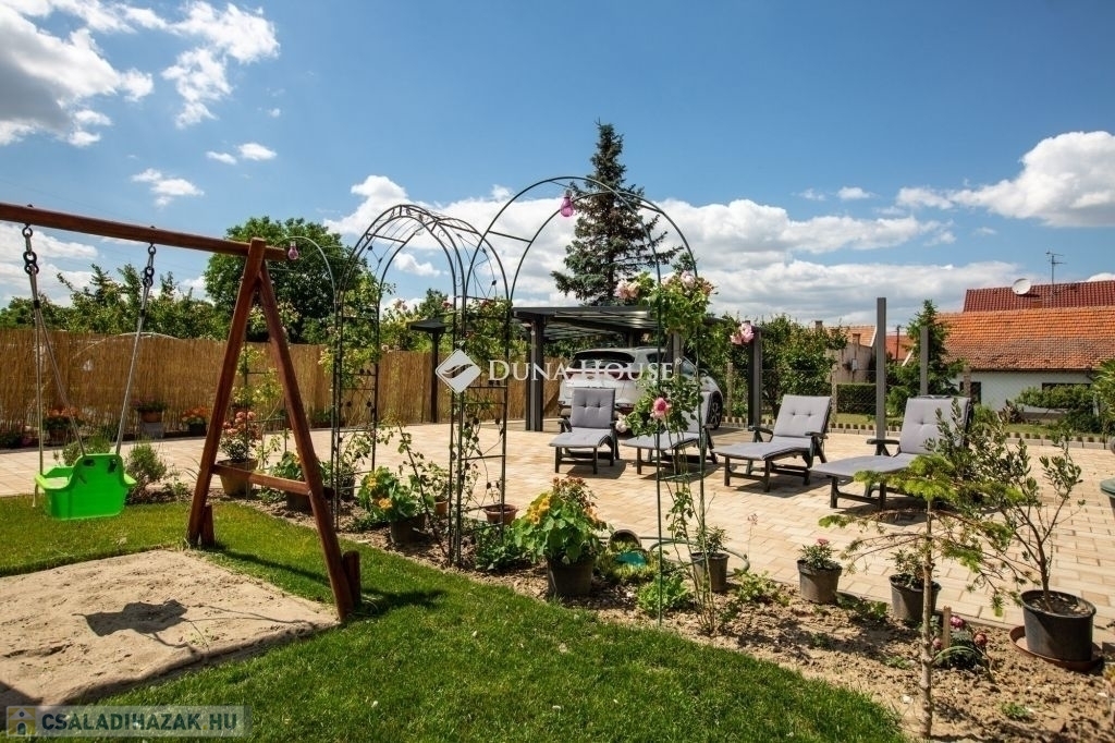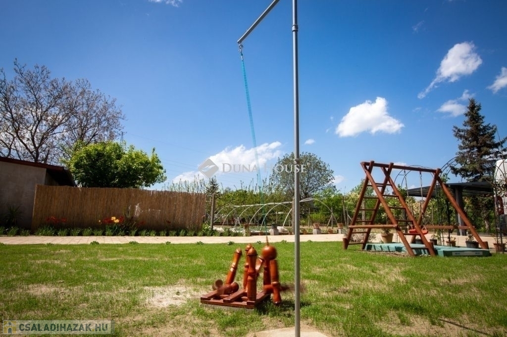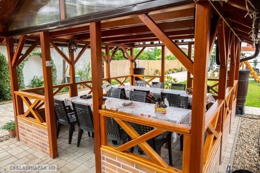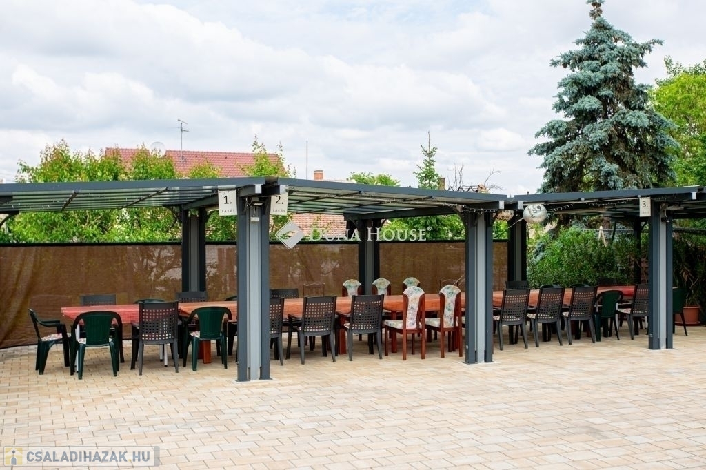 100 m²-es melléképület: 2 garázs (egy elektromos kapuval), nyári szoba klímával, nyári konyha, zuhanyzó + WC