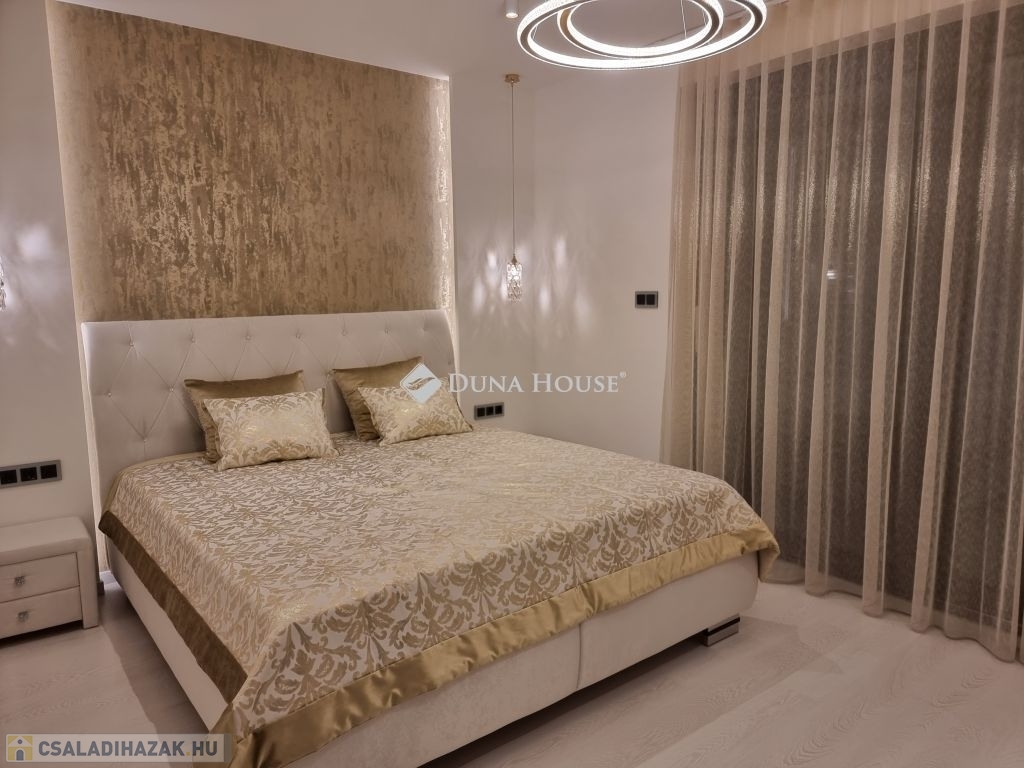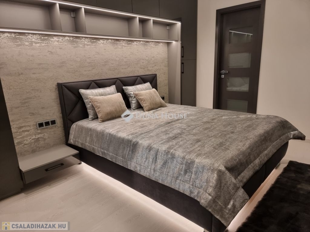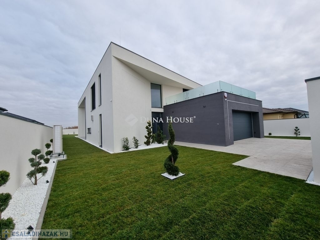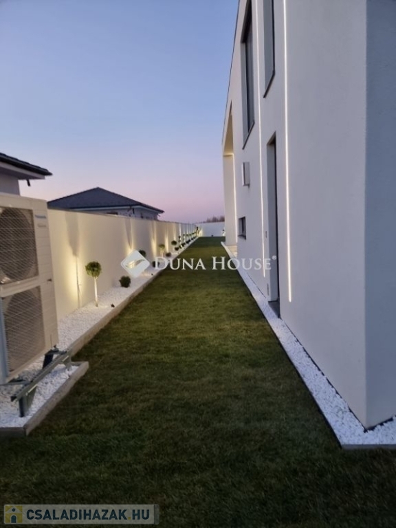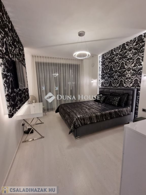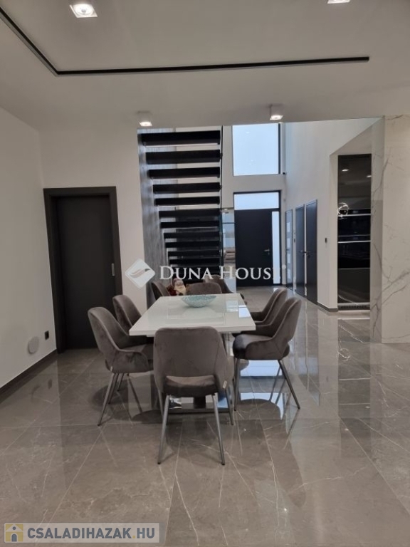 A Liliom Lakóparkban eladó egy 2021-ben épült, közel 400 m²-es, két szintes panorámás villa, prémium anyagokkal és modern technológiával.