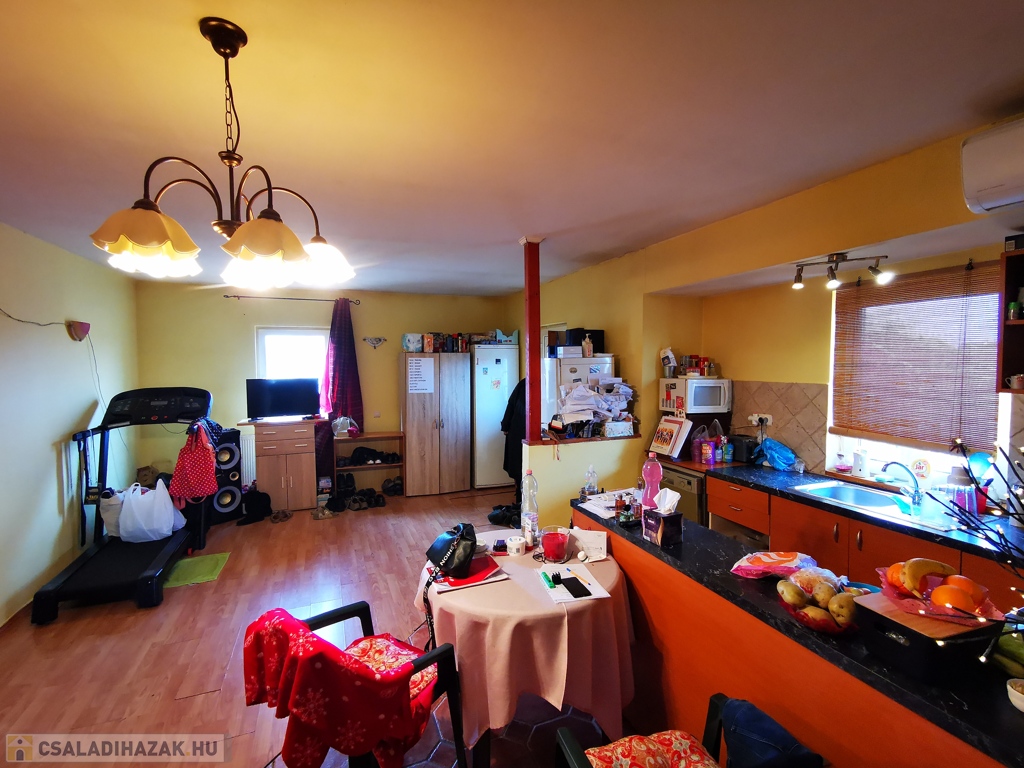 Szeged-Petőfitelep kitűnő közlekedésű és ellátottságú helyén, csendes utcában két szintes ház, 2004-ben hozzáépítéssel létrehozott, szigetelt, felső szintjén amerikai konyhás nappali + három külön bejáratú szobás, 73 nm-es, egyedi cirkó fűtésű, önálló mérőórákkal rendelkező lakás, nagy méretű terasszal, fedett autóbeállóval, saját kertrésszel eladó.