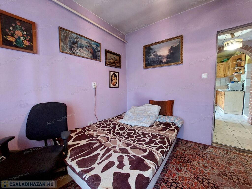 Szeged-Baktó kiskertes részén, csendes, nyugodt környezetben eladó egy kb. 60 nm-es, 2+1 külön bejáratú szobás, földszintes, előkertes, téglaépítésű ház, garázzsal (~30 nm) és melléképülettel, tágas, 783 nm-es telken. Az ingatlan átlagos állapotú, azonnal költözhető, de igény szerint szépíthető, alakítható is. Konvektoros fűtésű, a közművek közül vezetékes víz, villany, gáz rendelkezésre áll, csatorna nincs. Fúrt kút biztosítja a locsolást.