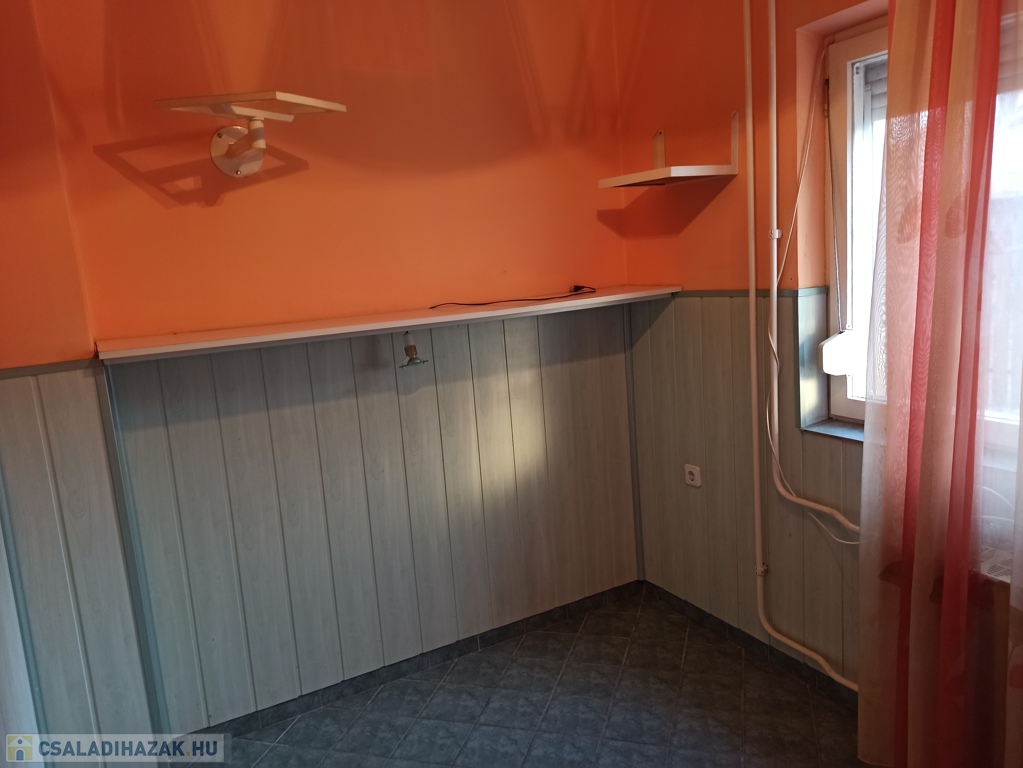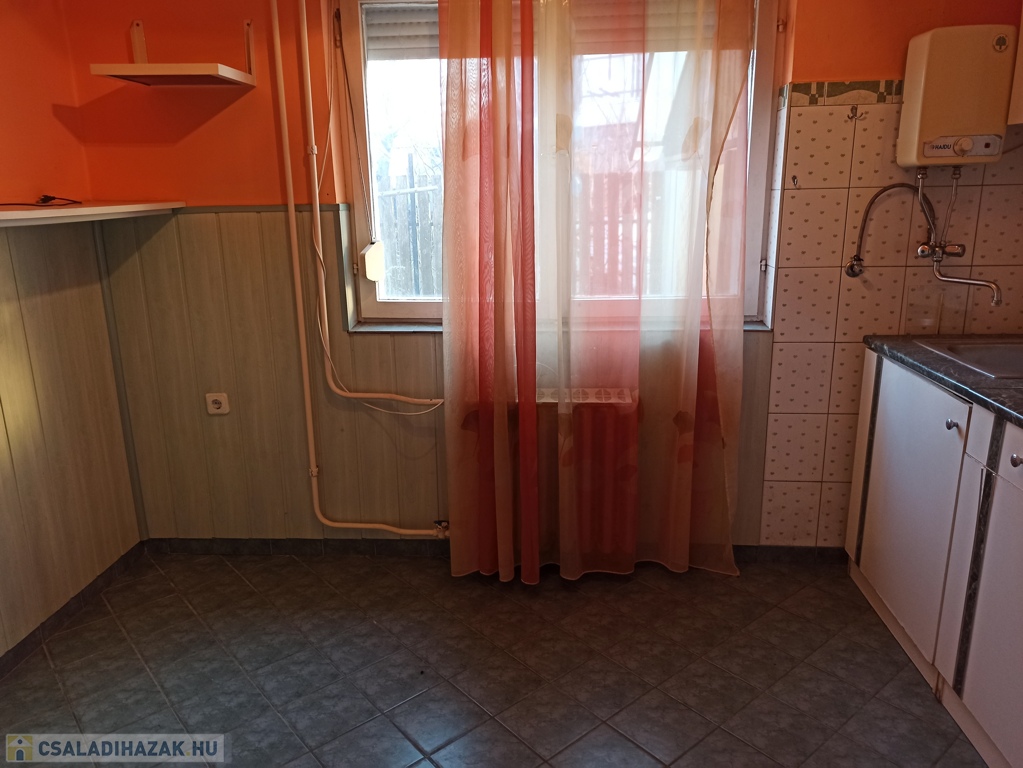 Szeged-Kiskundorozsmán a Vadliba utcában 63 m2-es + 9,8 m2-rel bővíthető (a nyári konyha és padlásfeljáróval), 1985-ben, téglából épült, jó állapotú, napfényes ház, 2 külön bejáratú (22 - és 15,3 m2-es) szobás, konyha, kamra, külön fürdő és WC, cirkó fűtésű, klímás, fedett autóbeállóval az udvaron, 443,5 m2-es teleken, tehermentesen, gyors birtokba adási lehetőséggel, alkuképes áron eladó. Továbbá 13 m2-es fedett, betonos aljzatú tároló is van. Sima falazata festett, a 2 szoba faparkettás, a többi helyiség járólapos. A bejárati ajtó és ablakok új, műanyagra cseréltek (kivéve a konyha, 1 légkamrás fából), redőnyökkel ellátott, éjszakai áram van. A háznak két oldala szigetelt, a kert fúrt kúttal ellátott. Buszmegálló 300 m-re. Csendes utca, nem messze a központtól. Kiváló lehet fiataloknak, időseknek egyaránt.