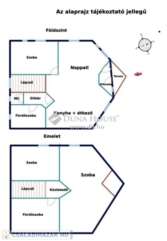 Az emelet jelenleg majdnem szerkezetkész állapotban van és sok lehetőséget rejt magában. A lépcsőn felérve egy közlekedőhöz érkezünk, amelyből két szoba (30nm,11nm) nyílik, valamint egy fürdőszoba.