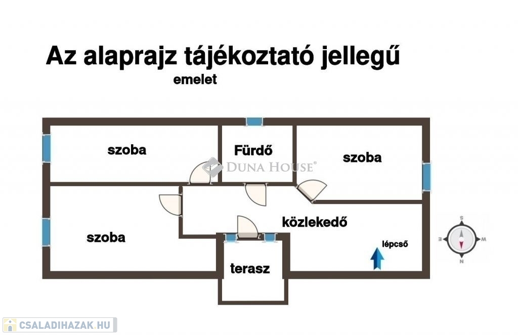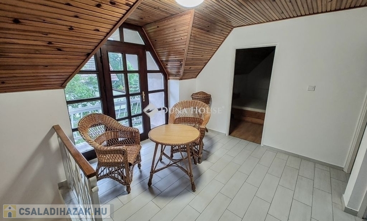 Emelet/tetőtér: társalgótérből nyíló három külön bejáratú hálószoba, második fürdőszoba WC-vel és nagyméretű sarokzuhannyal