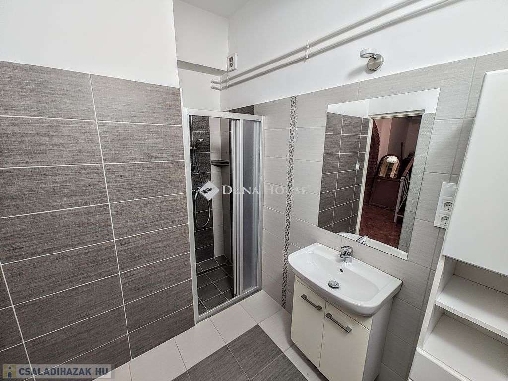 Földszint: tágas nappali, részben szeparált, teljesen gépesített konyha (indukciós főzőlap, mosogatógép, külön hűtő, mikró), fürdőszoba épített zuhanyzóval, külön WC