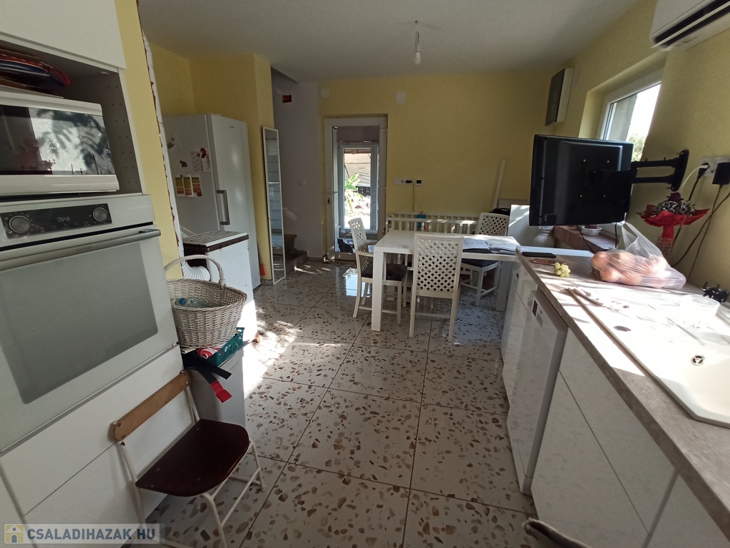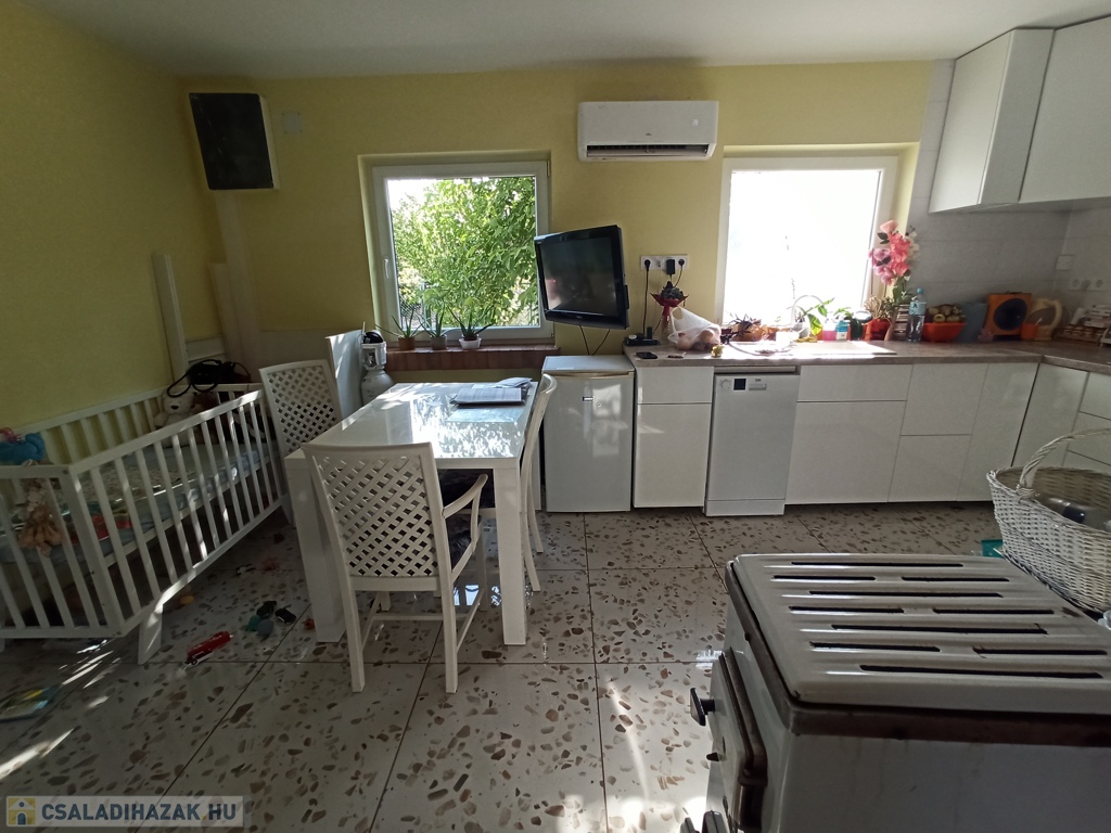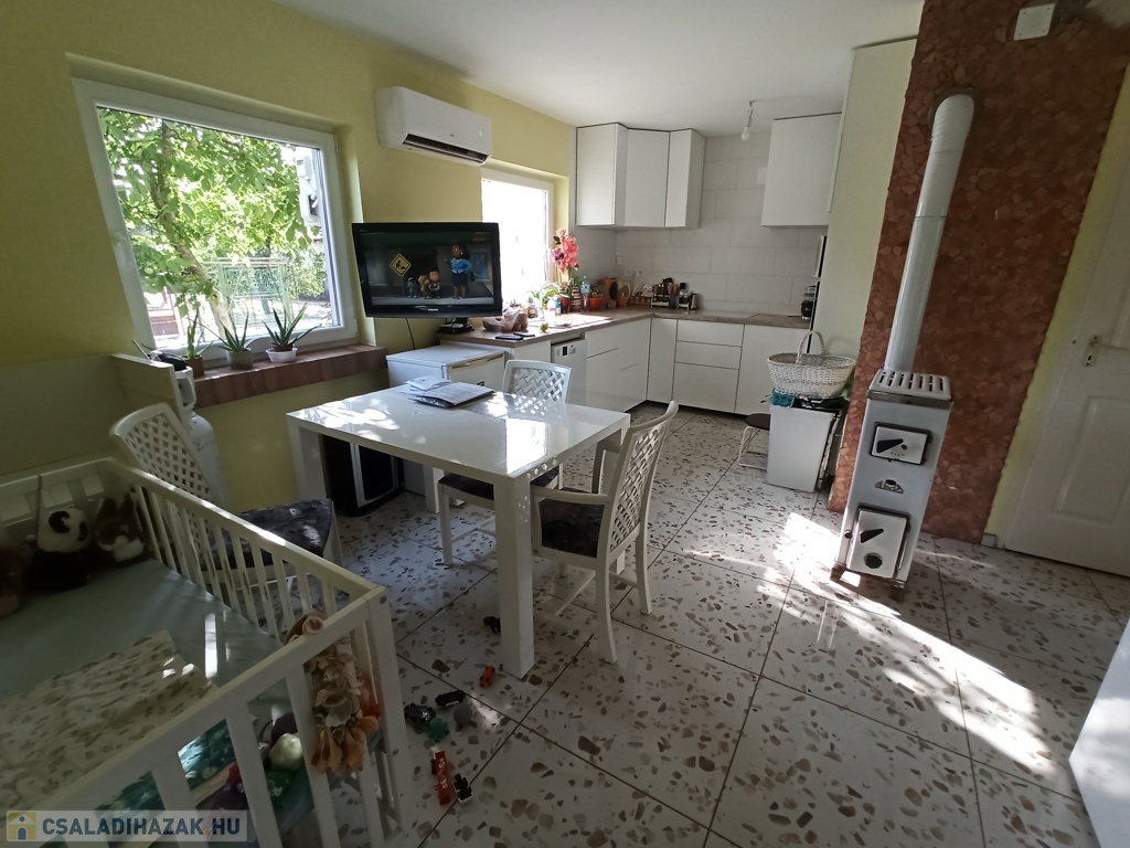 Szeged-Baktói kiskertekben, 110 m2 bruttó/85 m2 nettó, 5 szobás, kétszintes, tehermentes, 1.128 m2-es telken, gazdasági épületként nyilvántartott (még bővíthető) lakóház eladó. A ház 2015-ben téglából, betonalappal, aljzatszigeteléssel épült, melyet 2023 tavaszán teljes körűen felújítottak – szigetelték, új burkolatok, nyílászárók, fürdőszoba, konyha, villanyhálózat (előkészítve 3 fázisnak és napelemeknek). Az ingatlan elektromos padlófűtésű, kivéve a nagy beépített teraszt (fűtőszálas), a nyári hűtést 5 hűtő-fűtő klíma biztosítja, továbbá akár hangulatos kandallóval is rá lehet segíteni. Alsó szinten előszoba, amerikai konyhás nappali, fürdő, WC és egy nagyszoba. Felső szinten három külön bejáratú szoba és WC található. A háznak 3 bejárata is van, továbbá 2 állásos, fedett garázshely (2 autóbejárattal). Villany, vezetékes víz és fúrt kút van, gáz az utcában. Csendes hely, jó megközelíthetőség.