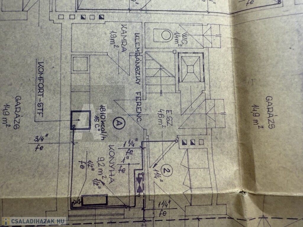 -földszint : előkert ,garázs, előszoba beépített szekrénnyel , étkező-konyha kamrával és egy vendég mosdó