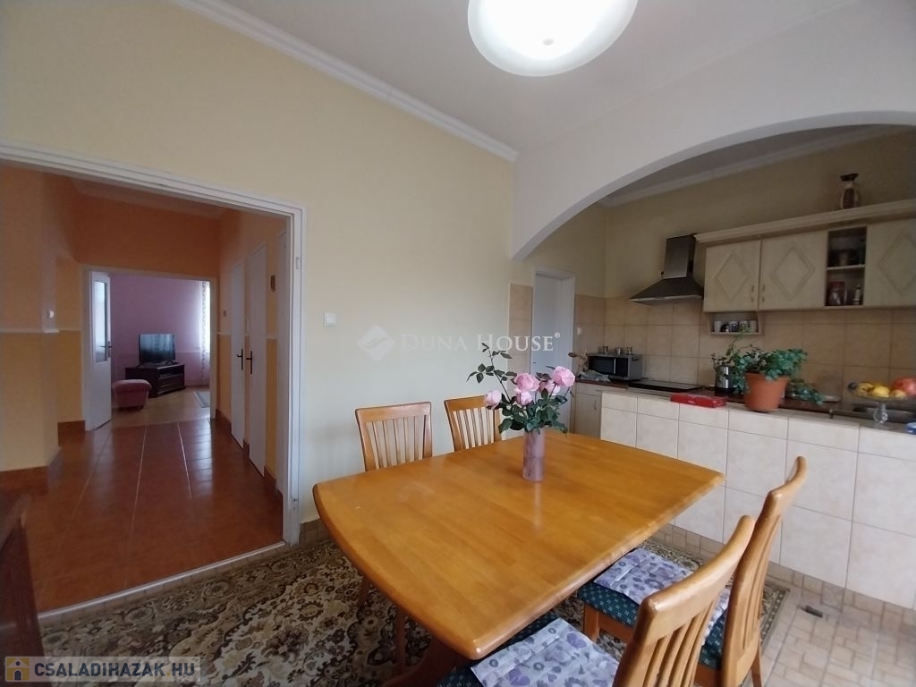 NAGYCSALÁDOSOK, ÖSSZEKÖLTÖZŐK FIGYELMÉBE!Szeged-Szőreg frekventált részén kínálok megvételre egy, az 1974-ben épült családi házat. Az épület 1670 m2-es területen helyezkedik el. Az aszfaltozott utcáról nyíló kapun keresztül juthatunk be a rendezett, parkosított udvarra. A 192 m2-es épület belső kétszintes, praktikusan elrendezett lakótérből áll.Felújítás keretén belül:- 2008-ban víz-, villany-, gázvezetékek cseréje megtörtént,- 2016-ban a földszinti rész új burkolatot kapott.Térelosztása az alábbi:Az épület földszintjén szoba, konyha, háztartási helyiség, tároló, wc , közlekedő és az utcáról nyíló 22 m2-es garázs került kialakításra.Az emeletre fa lépcső vezet, a közlekedőből nyílnak a helyiségek: a 3 külön bejáratú szoba, konyha – étkező, fürdő és a szeparált mellékhelyiség. A környezettel való kapcsolatot az étkezőből nyíló, kertre néző 6 m2-es loggia biztosítja.Az összes helyiség tágas, kellemes életérzést nyújt.A nyílászárók redőnnyel, szúnyoghálóval felszereltek. A szobák parkettával, a többi helyiség járólappal burkolt.Falai festettek, fűtése egyedi gáz cirkó radiátor hőleadókkal.A biztonságról riasztórendszer gondoskodik.A kerítéssel körbe kerített telek füvesített, termő gyümölcsfákkal, szőlővel beültetett.- a lakóépületen kívül szerszámos bódé, verem is található- kert- fúrt kút - a telek összközműves (víz, villany, gáz, csatorna)- az ingatlan aszfaltozott utcában találhatóElhelyezkedés szempontjából kiváló. A környéken minden szolgáltató egység pár perc sétával elérhető: iskola, óvoda, gyógyszertár, orvosi rendelő, élelmiszerbolt, húsbolt, posta, gazdabolt, szolárium, pizzéria, cukrászda stb.Szeged Belvárosától autóval kb. 15 perc útra található. Tömegközlekedés is kiváló, hiszen a közelben áll meg a 60Y-os autóbusz.Nagycsaládosoknak, valamint két generáció együttélésére is kiválóan alkalmasTovábbi információért, megtekintésért forduljon hozzám bizalommal!