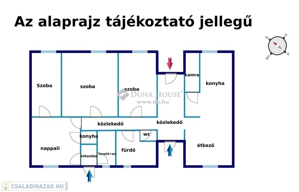 3 szoba + nappali, konyha, étkező és kamra