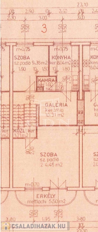 Emeleten szoba, konyha+spajz, étkező