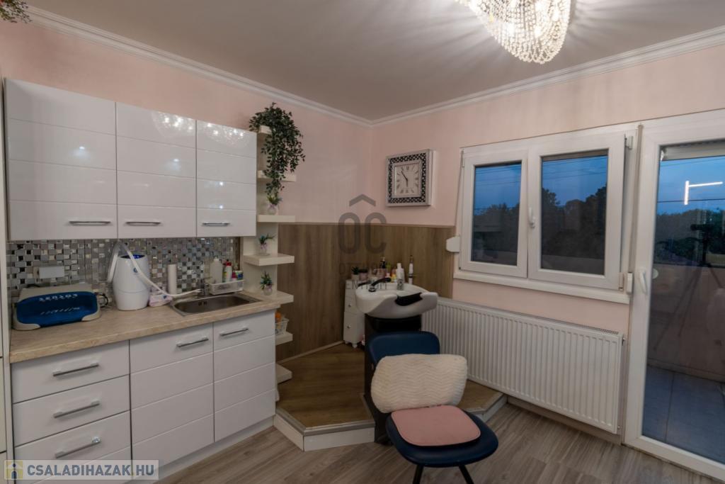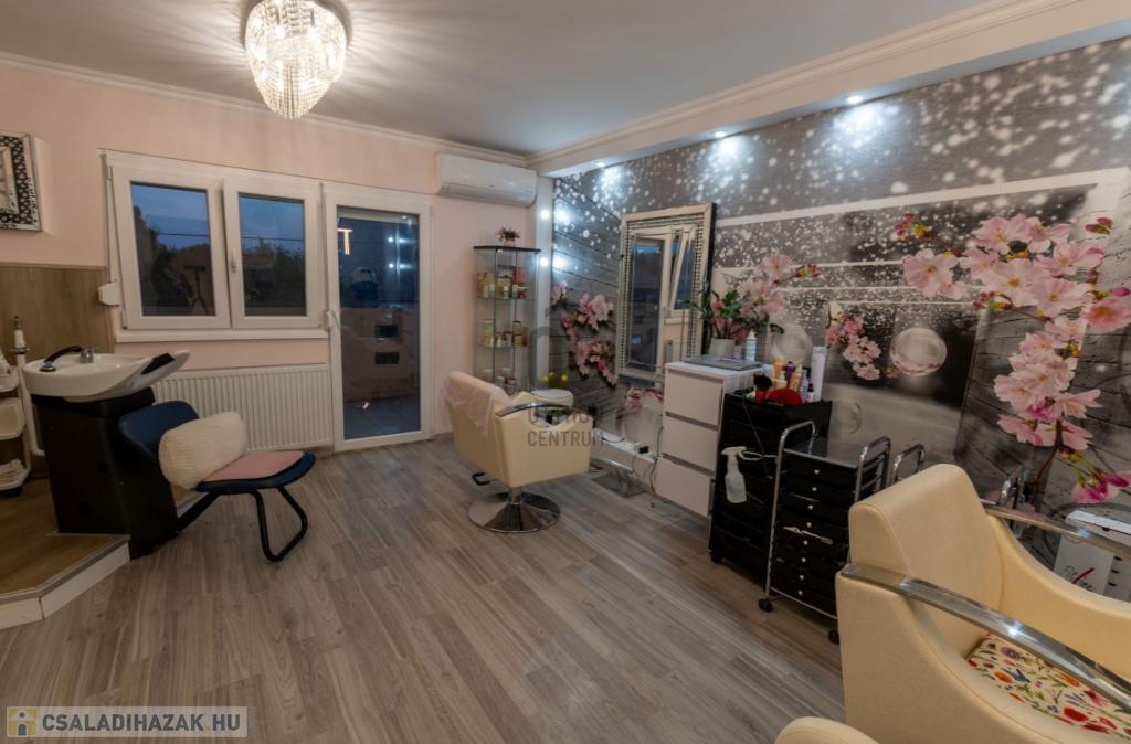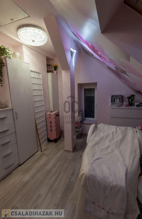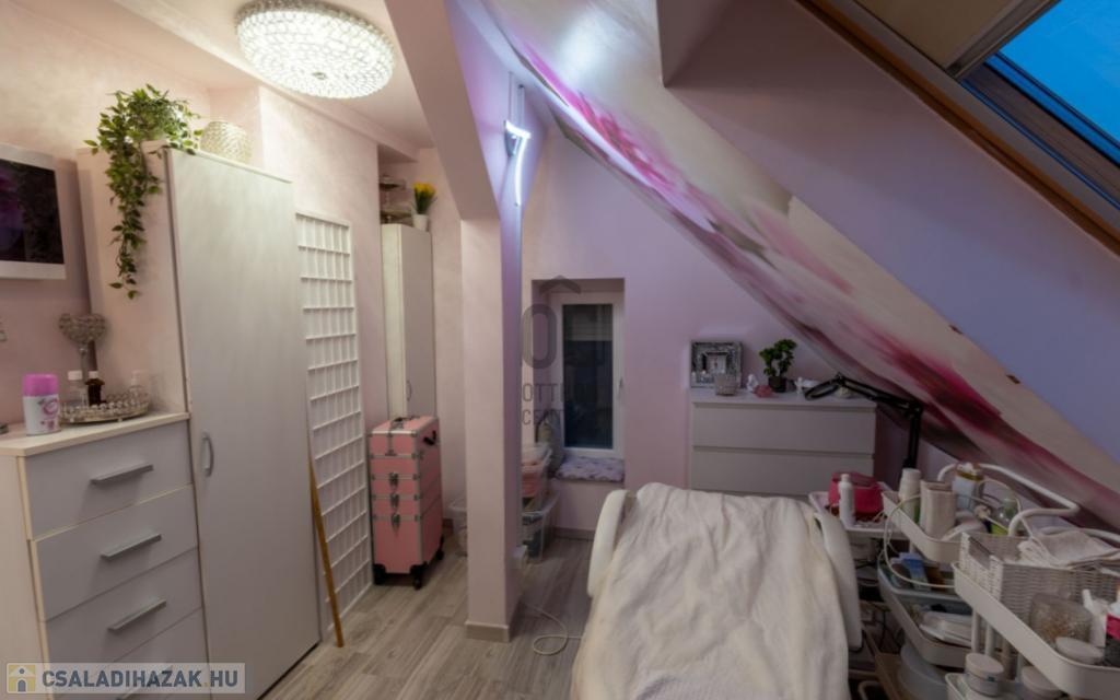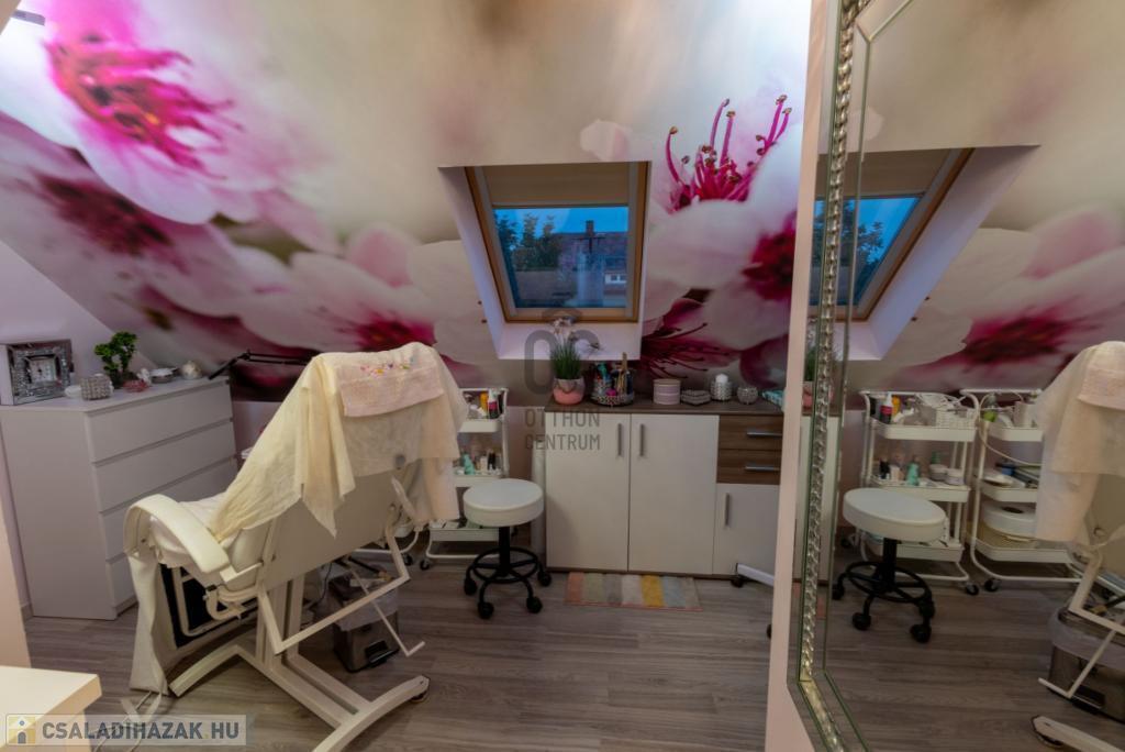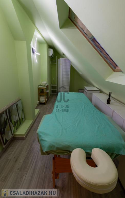 A felső (tetőtéri) szint kozmetika és fodrászszalon jelenleg, de előtte lakás volt, így könnyen visszaalakítható. A ház délkeleti és délnyugati tájolású ablakainak köszönhetően világos, napos, a szükséges hűtésről klímaberendezés gondoskodik.