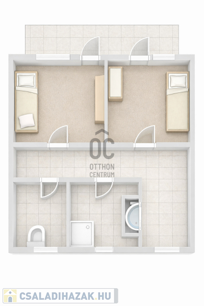 • 70 m² földszint: nappali + 1 szoba, összkomfort, garázzsal