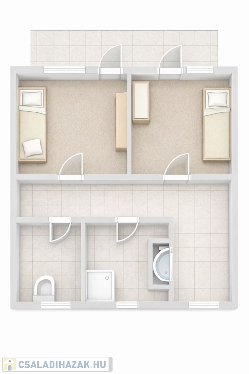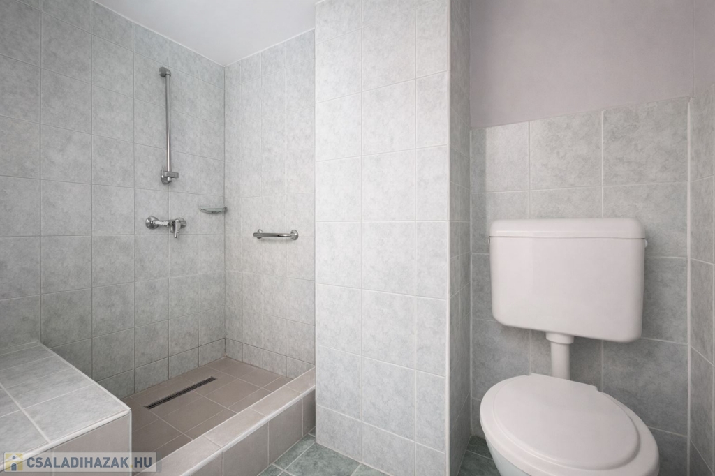 - 100 m², külön bejáratos emelet + tetőtér: nappali–konyha–étkező + 3 hálószoba, 2 fürdőszoba