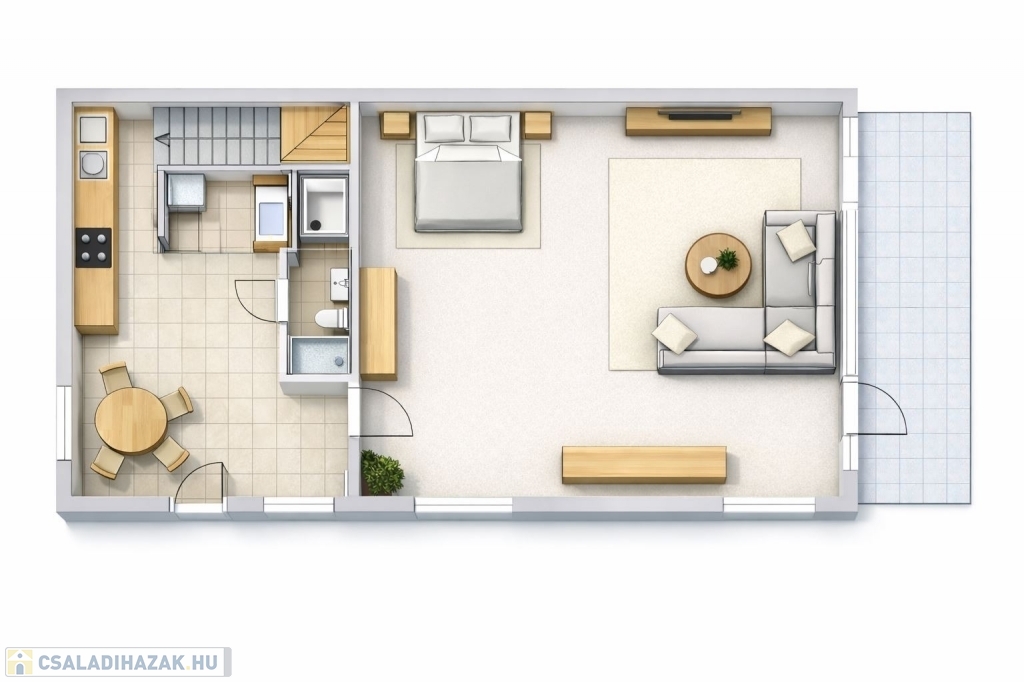 - 40 m² kis ház, pincével, 17 m²-es terasszal