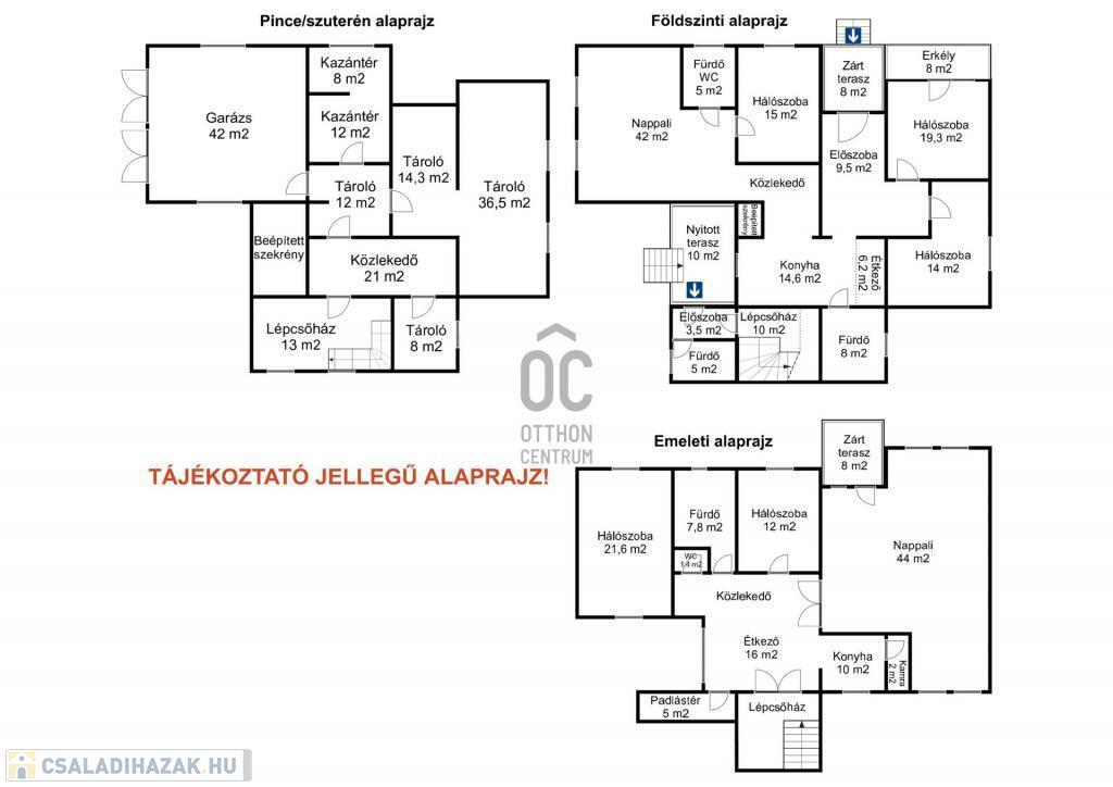 Szuterén szint: 120 m², jelenleg tároló és kazánház, de vállalkozási célra is kiváló lehetőségeket rejt