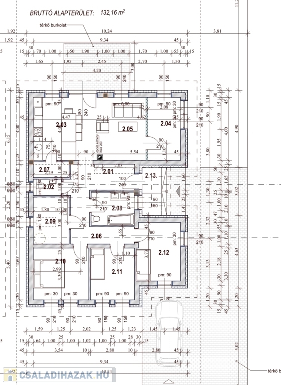 ● Nappali + 4 hálószoba + kamra + háztartási helyiség+ fürdőszoba+ vendég wc+ terasz(16m2)