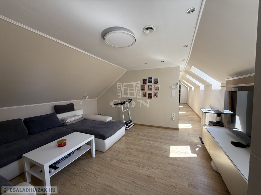 • Tetőtéri lakás (54 m²): modern, fiatalos stílusban kialakított, előtér, konyha-étkező, nappali, két hálószoba, fürdőszoba WC-vel. Klimatizált, inverteres (7 kW és 3,5 kW) hűtő-fűtő klímákkal felszerelve.