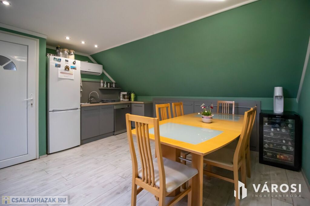 A székesfehérvári legjobb helyén a Pláza közelében eladó ez a 2005-ben épült, egyedi stílusú, hangulatos, 2 szintes házrész, 246 négyzetméteres kertrésszel. A két szint jelenleg két különálló lakásként funkcionál, de összenyitható ismét. A földszinti lakrész 93,5 az emeleti lakás pedig nettó 53,5 négyzetméter (bruttó 93,5 nm) Ezen kívül az udvaron található még egy 30 négyzetméteres fedett kerti kiülő, ami ideális helyszíne lehet családi vagy baráti összejöveteleknek. A társasházban összesen két lakás van. Többgenerációs családoknak vagy összeköltözőknek ideális.