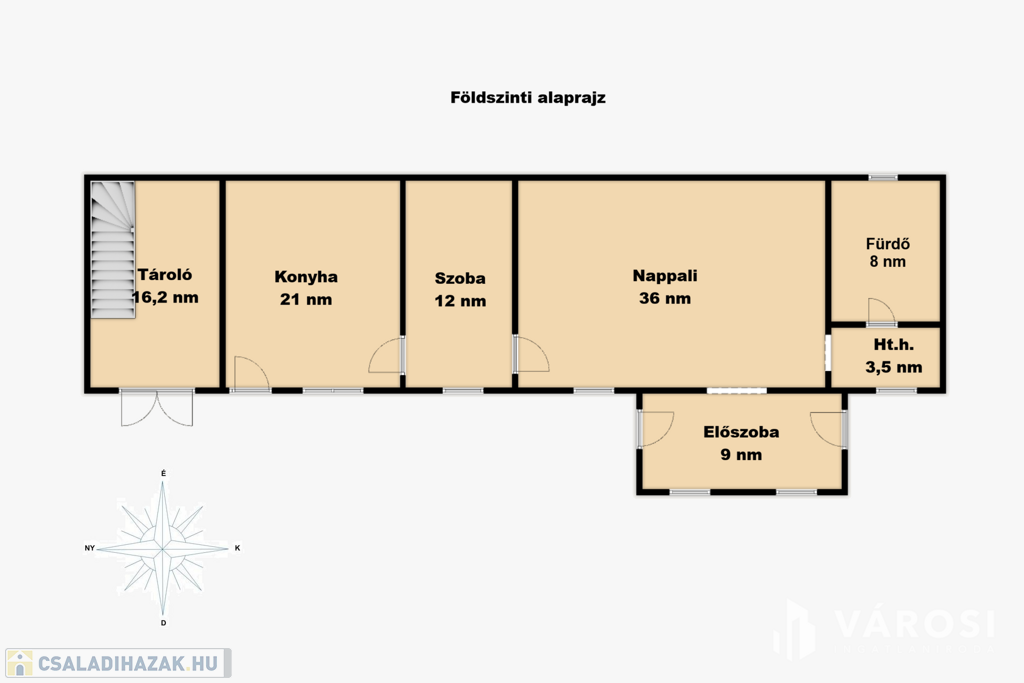A földszinten nappali, konyha, hálószoba, fürdőszoba, háztartási helyiség és tároló (lépcsőház) található. Az emeleten pedig nappali, 2 hálószoba, konyha és fürdőszoba helyezkedik el.