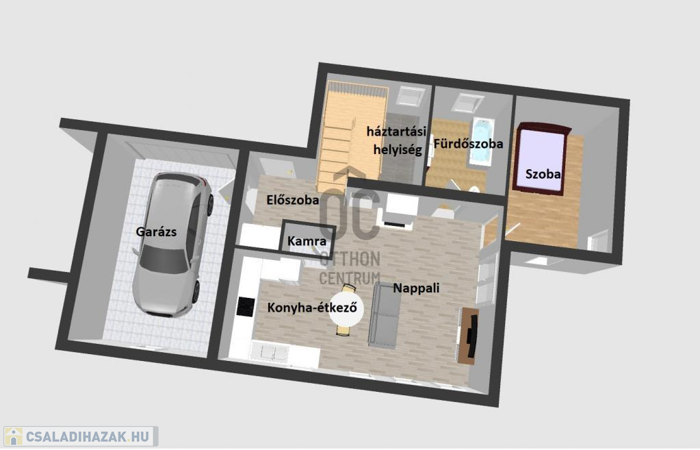 Külön bejárattal és kerítéssel rendelkezik, így teljes privát életteret biztosít a leendő tulajdonosnak.