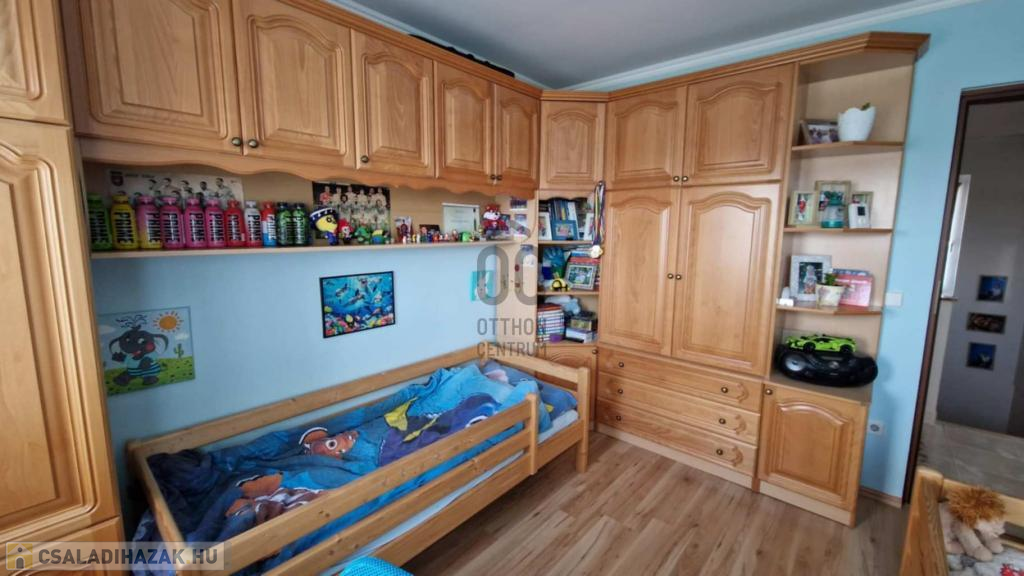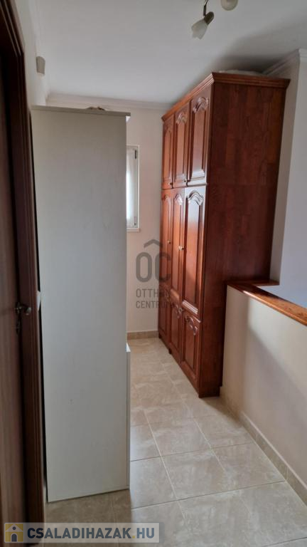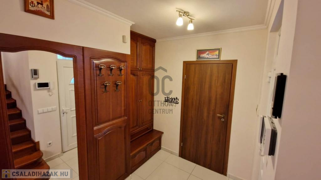 Konyha tömör cseresznyefa frontokkal, beépített cseresznyefából készült előszoba bútor, emeleti közlekedőben is nagy méretű tölgyfából készült beépített bútor, hogy a helyek maximálisan ki legyenek használva pakolásra