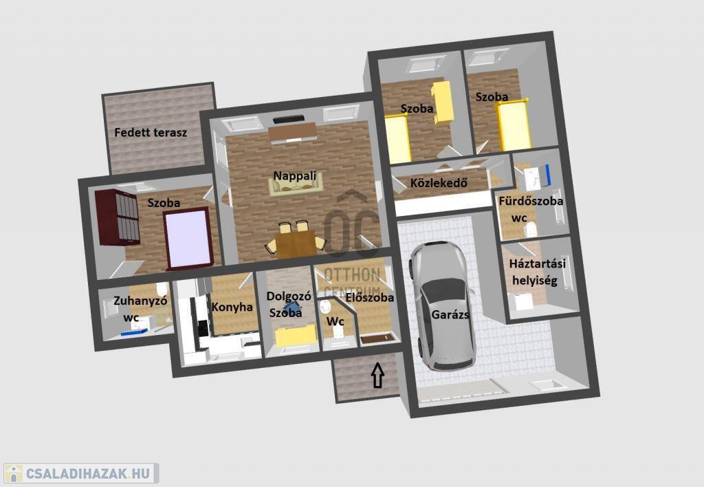 garázs a házon belül egy járműnek, saját tárolóval