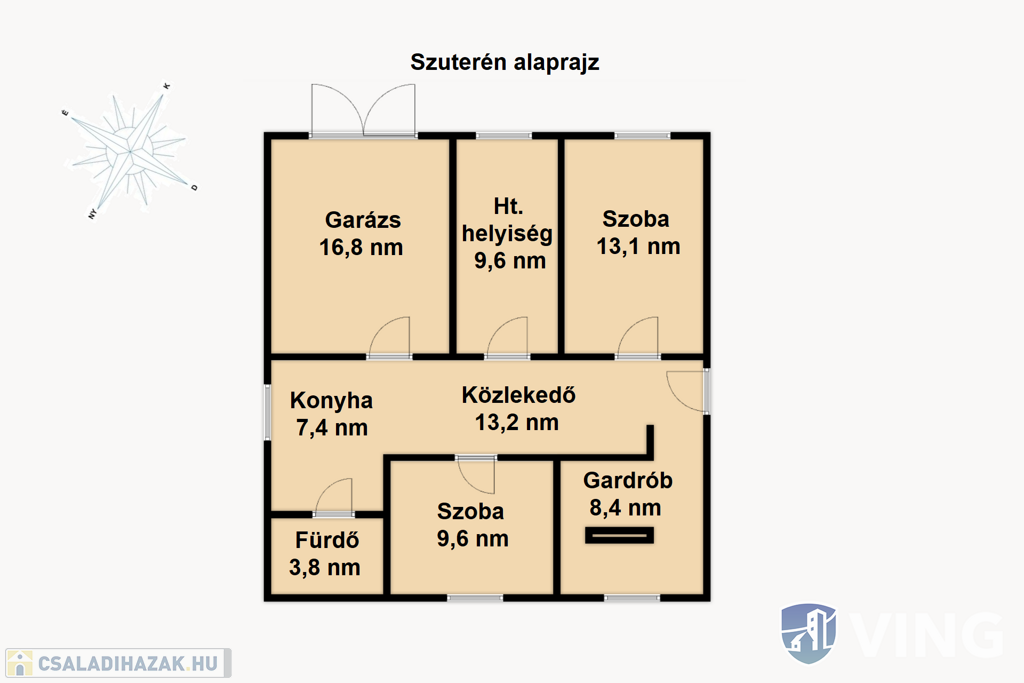 A földszinten amerikai konyhás nappali, két szoba, spájz és fürdőszoba található. Az emeleten 3 szoba, konyha, spájz, fürdőszoba helyezkedik el. Míg a szuterén szinten 2 szoba, gardrób, háztartási helyiség, fürdőszoba és garázs került kialakításra.