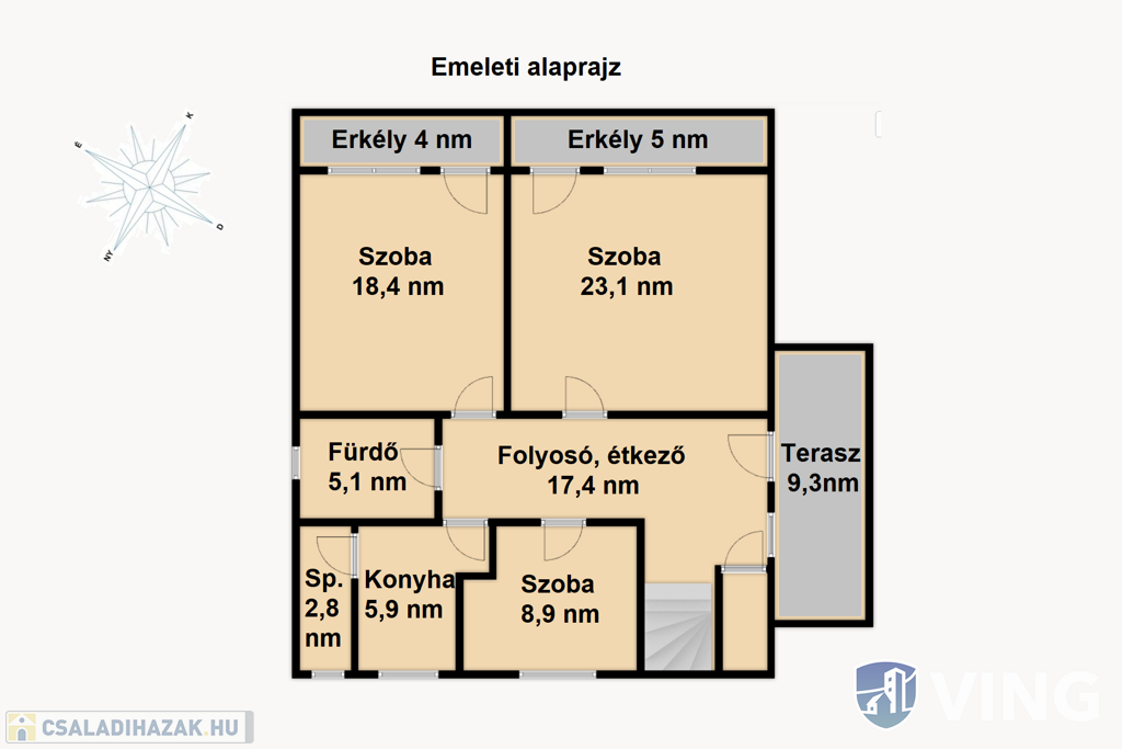 A ház, egy 1120 négyzetméteres telken fekszik. Elég nagy ahhoz, hogy a már kialakított 4 lakrészhez és a még felújítandó házhoz kellő méretű udvar maradjon, az igény szerint kialakítandó gépkocsibeállók mellett. Jut még hely, hogy kerti partikat rendezzenek rajta, vagy a családok kedvencei kedvükre szaladgálhassanak benne.