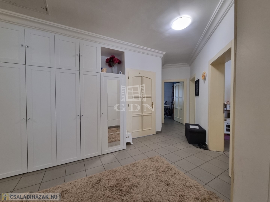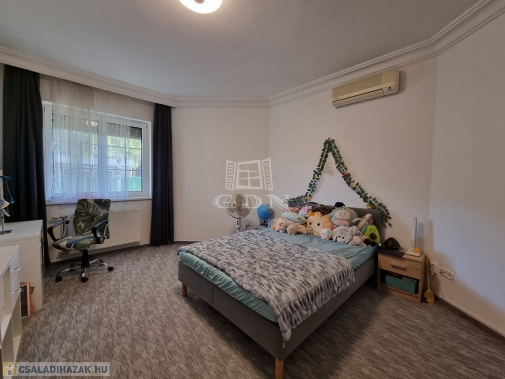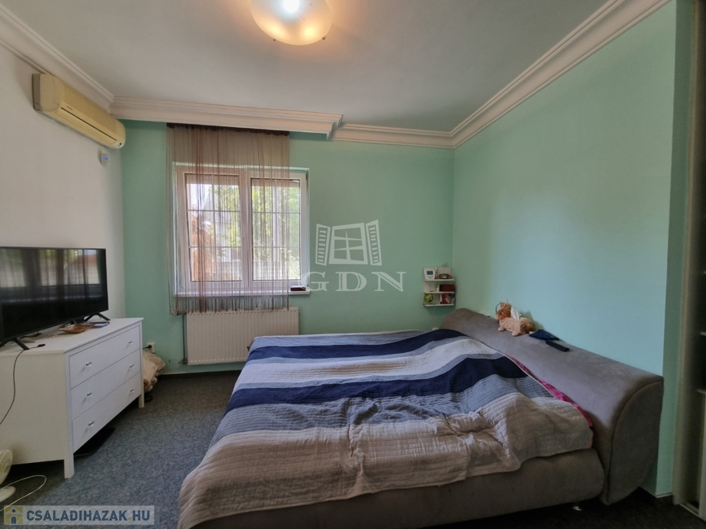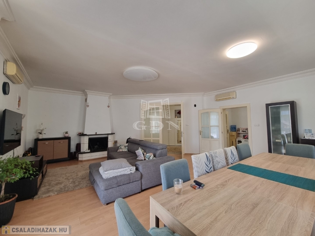 H-004202, Felsővárosban, a Belvároshoz közel, frekventált helyen összközműves építési telken eladó, egy 2000-ben épült egyszintes, 200m2 alapterületű, nappali + 4 teljes értékű szobával rendelkező önálló családi ház, dupla garázzsal.