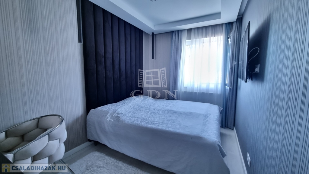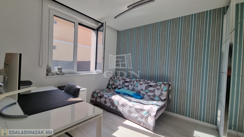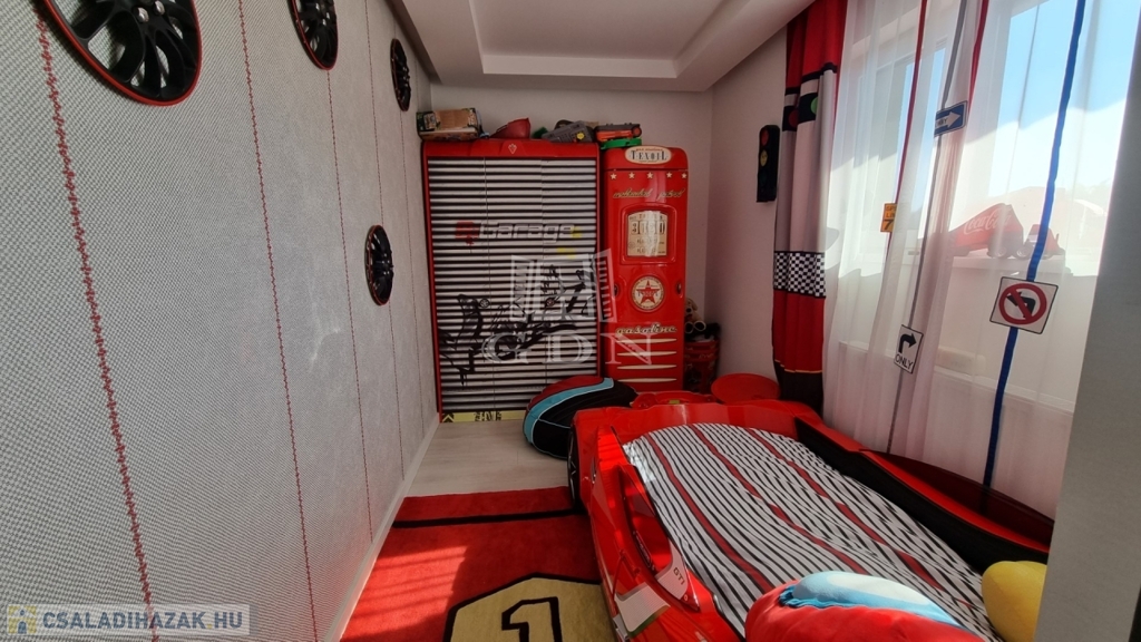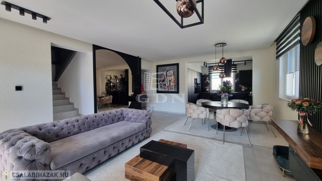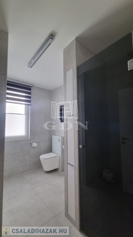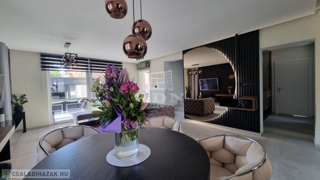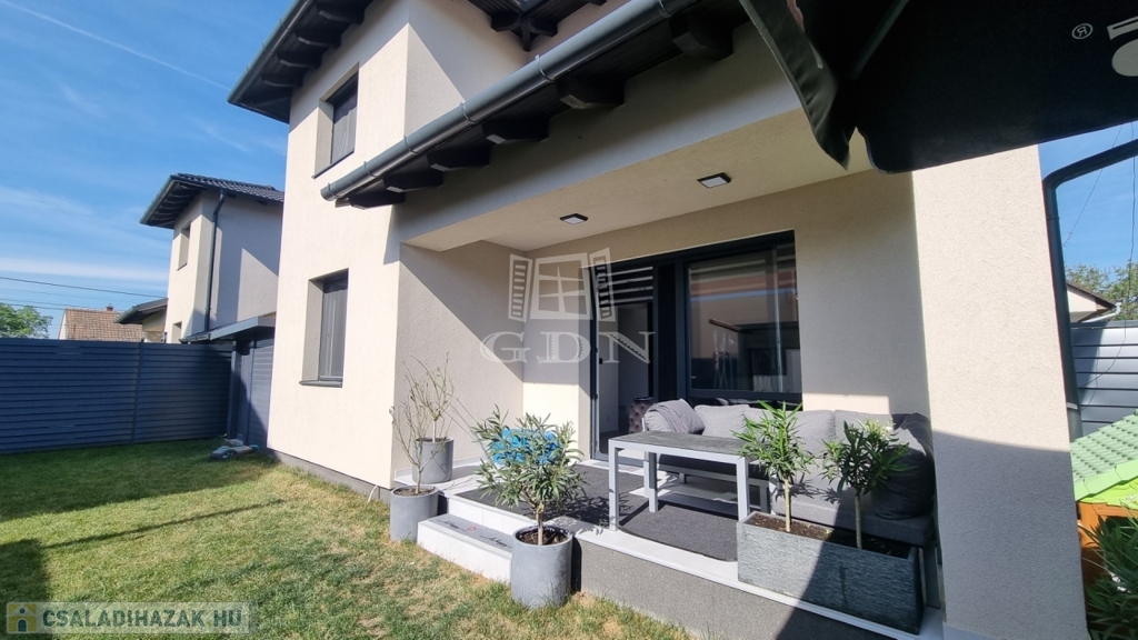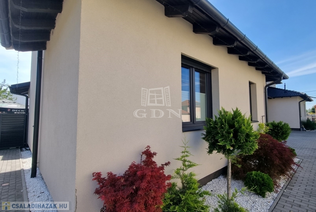 A ház téglaépítésű, szigetelt, tágas, világos, körbe napozott, minőségi anyagokból készült. A burkolatokat tekintve a szobákban magas minőségű laminált padló, a nappaliban a közlekedőben, valamint a konyhában és a vizes helyiségekben jó minőségű járólap található. A nyílászárók 3 rétegű műanyagból készültek, hőszigetelt üvegezéssel, rajtuk redőny és szúnyogháló található. A házban klíma kiépítésre került. A 20m2-es terasz, kényelmes pihenést biztosít. Az utcai kapu elektromosan nyitható. A telek örökzöldekkel, dísznövényekkel parkosított, pihenő terasz, gyermekjátszótér, és egy 27m2-es szauna/konditerem kiépített zuhanyzóval, gépészettel, valamint egy jakuzzi található benne.