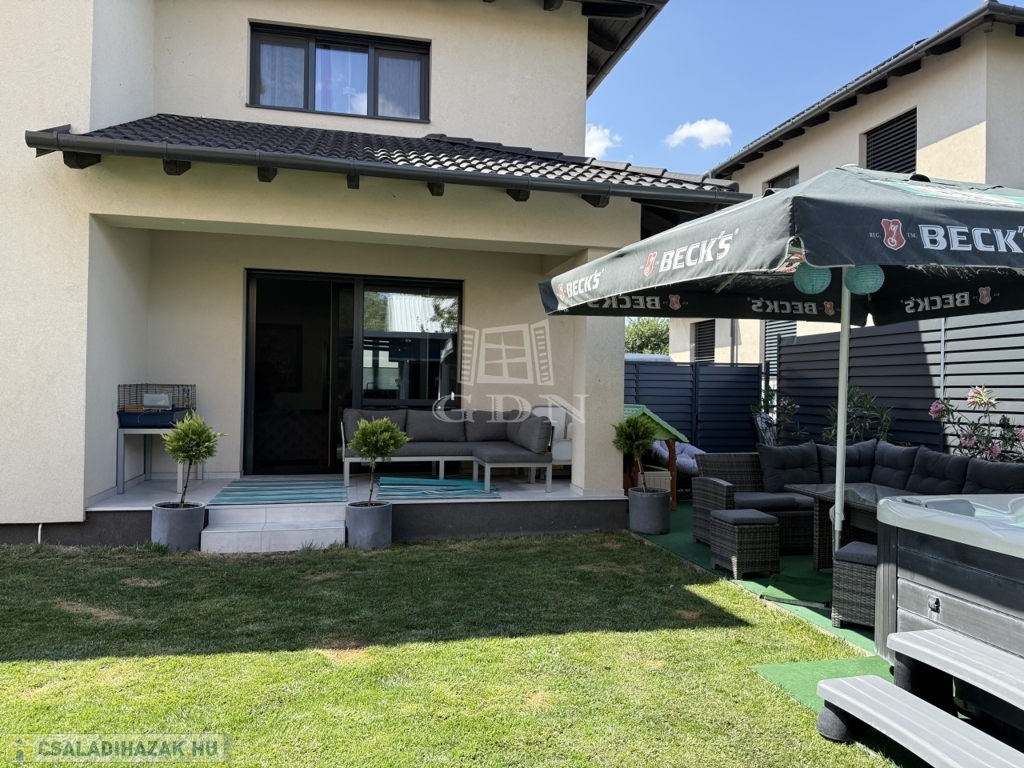 Energiahatékony ingatlan, saját 480m2 telekterület, kerti szaunaház, jakuzzi.
