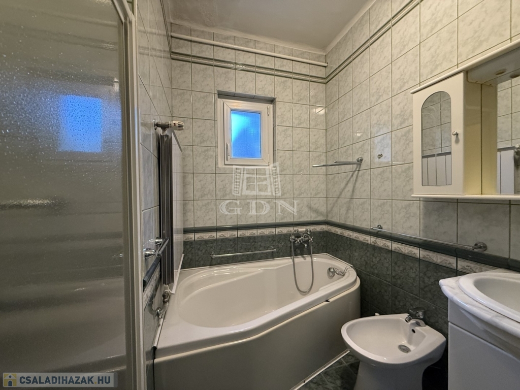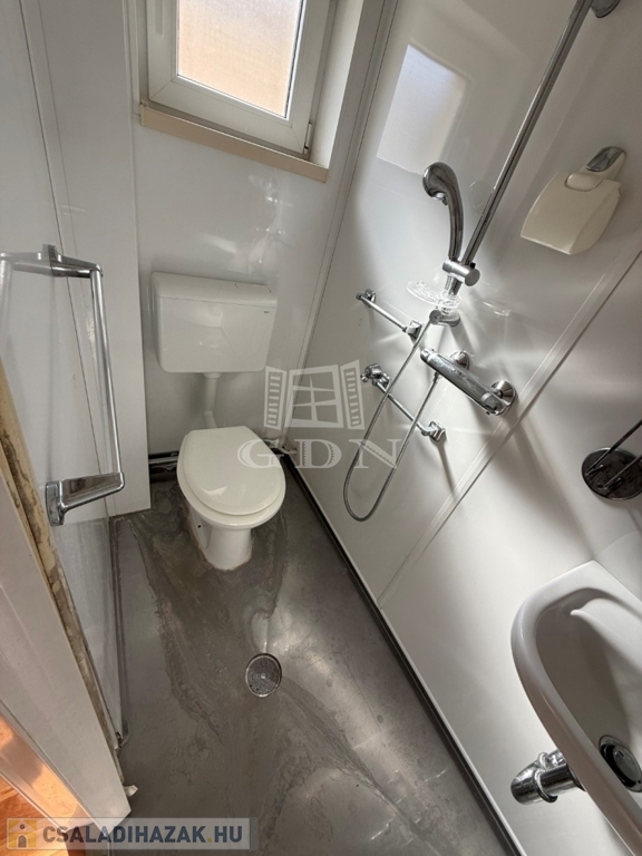 - egy lakrész található: 2 és fél szoba , a fél szoba saját fürdővel, fürdőszoba ,wc, étkező és konyha teljes értékű, jól elkülönülő életteret biztosít.