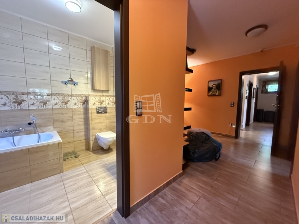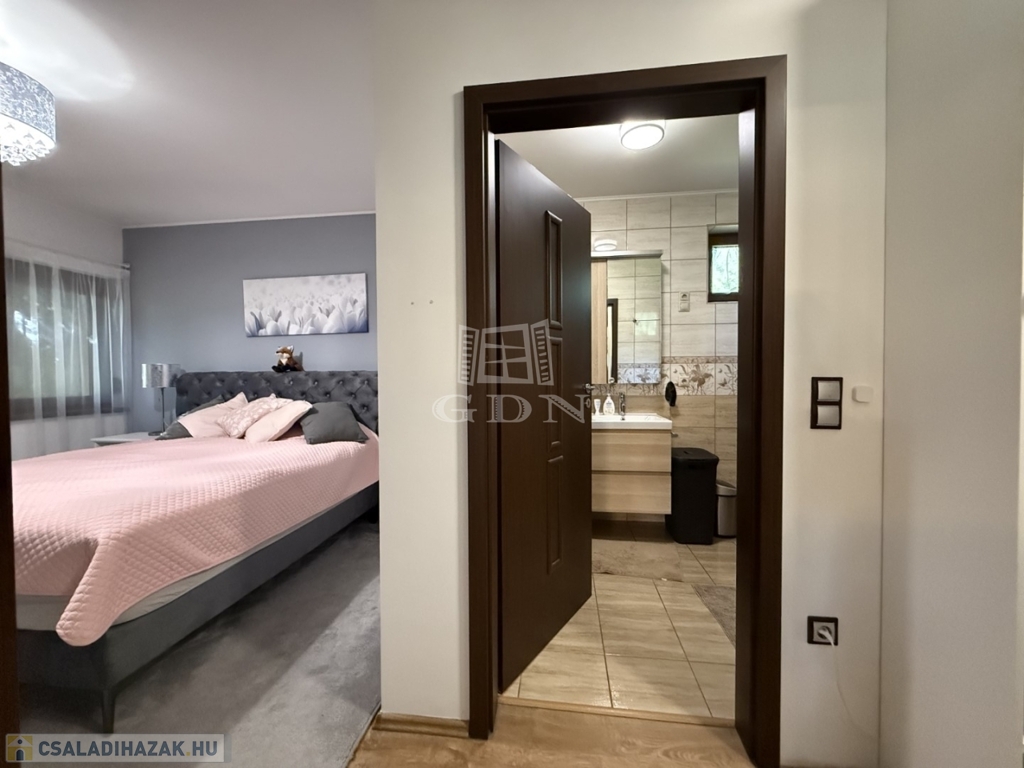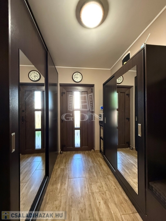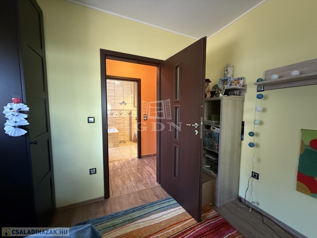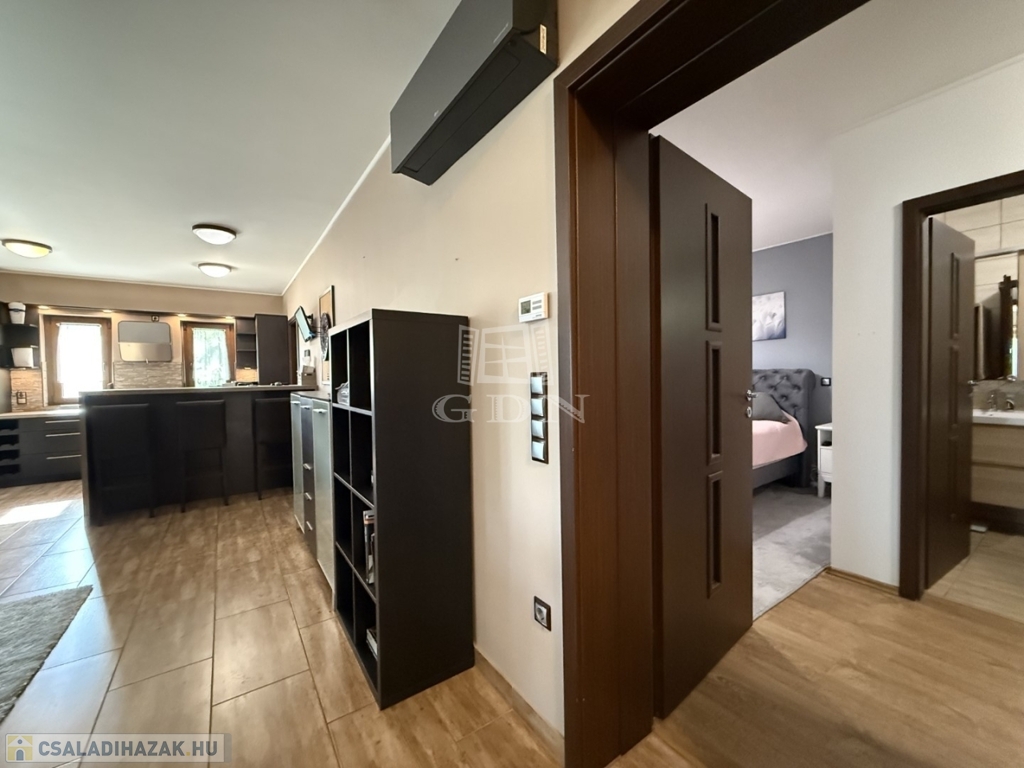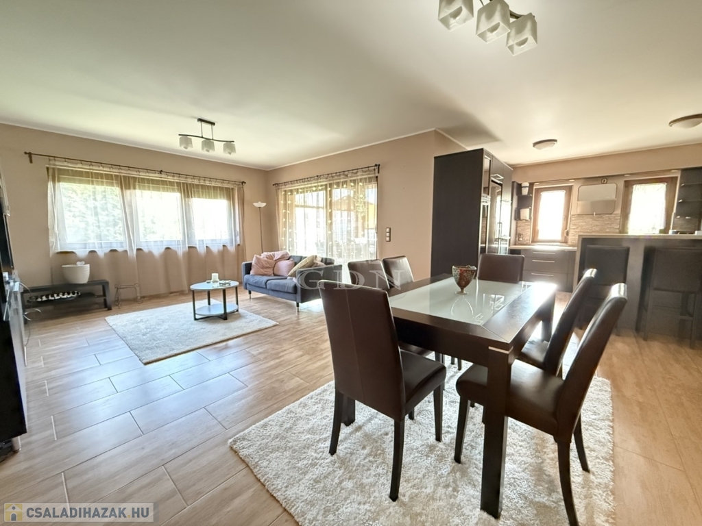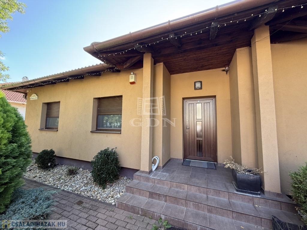 A ház tágas, világos, körbe napozott, minőségi anyagokból készült. A burkolatokat tekintve a szobákban magas minőségű laminált padló, a nappaliban a közlekedőben, valamint a konyhában és a vizes helyiségekben jó minőségű járólap található. A nyílászárók műanyagból készültek, 3 rétegű hőszigetelt üvegezéssel, rajtuk elektromos redőny és szúnyogháló található.