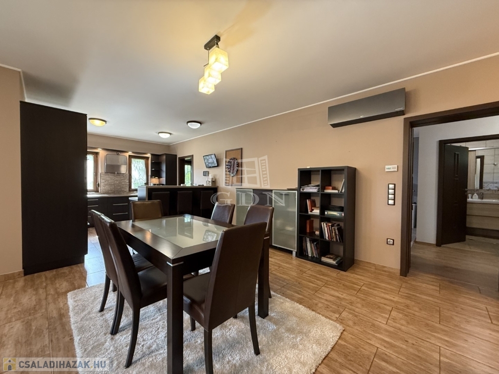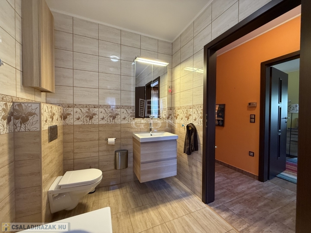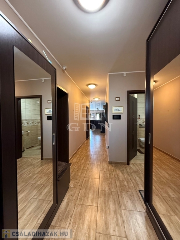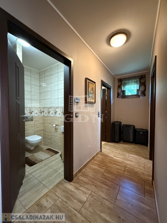- előszoba, tágas nappali konyha-étkező kamra, 4 szoba, 3 fürdőszoba +wc-vel bidével, nagy(39m2) részben fedett terasz, és 5,5m2 első terasz, mosókonyha, gépészei helyiség