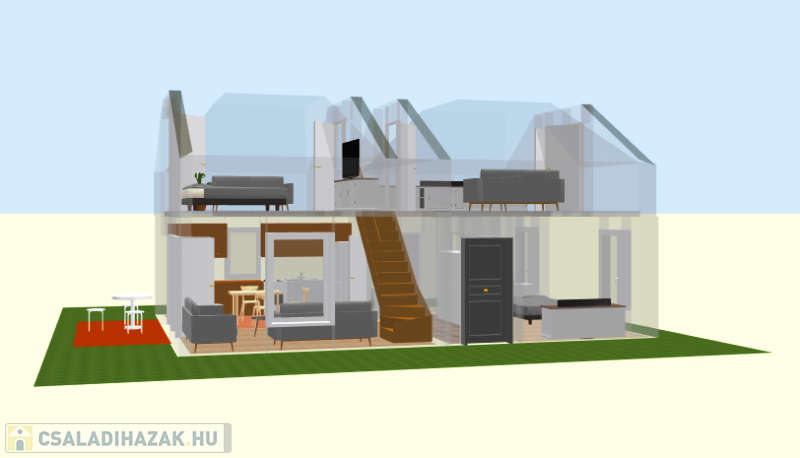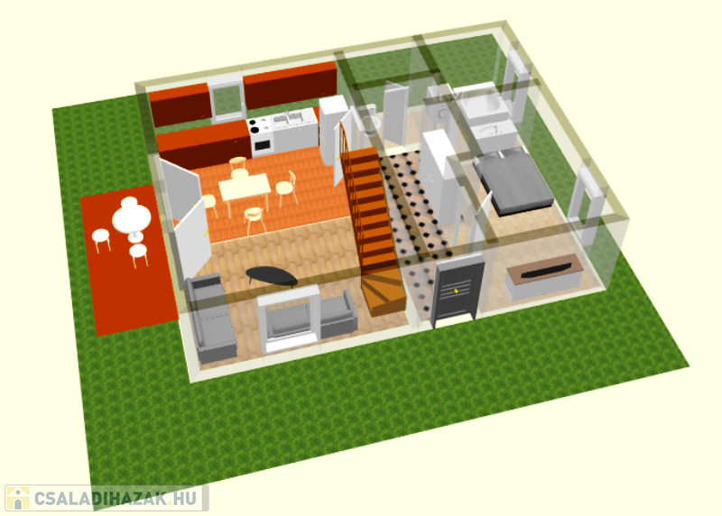 - konyha-étkező- nappali, hálószoba, fürdőszoba , wc a földszinten