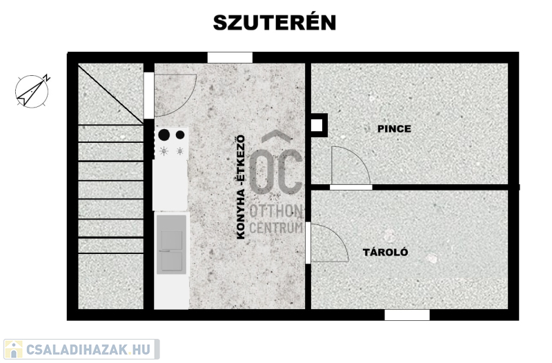 Szuterén (29,4m2): egy fűtött, tágas konyha-étkező, egy kamra és egy pincehelységből áll