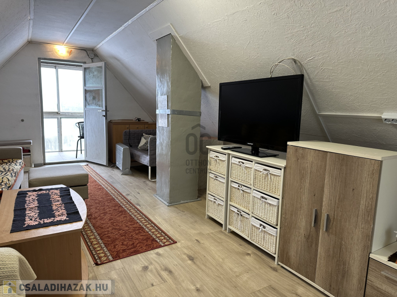 Tetőtér (12,4m2): az előszobából lenyitható lépcsőn lehet feljutni. Közlekedő és egy nagy szoba fogad bennünket.